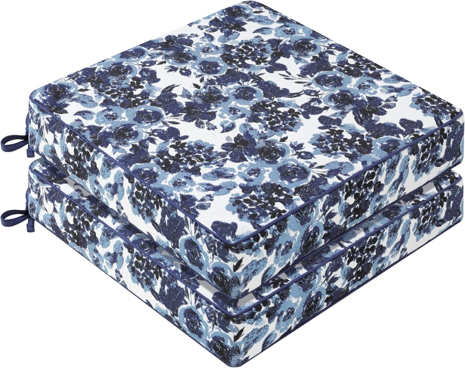 Favoyard Outdoor Chair Cushion 19 x 19 x 3 In Waterproof Pattern Fade Resistant Cushions for Patio Furniture with Removable Cover Attach Straps 28D Foam Insert Cushions Pads for Seat Sofa Couch 2 Pack