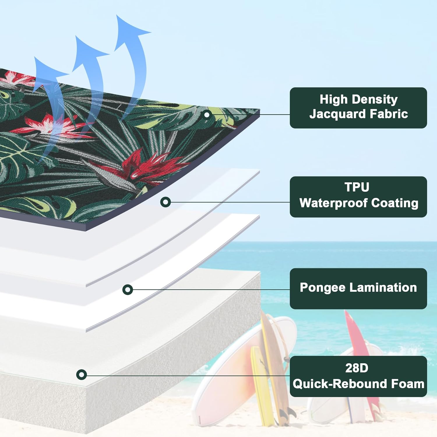 - Waterproof Cushions - Our outdoor cushions have a TPU waterproof coating on the cover and a hidden zipper to prevent water from entering the foam through the seams. Multiple ways to create our waterproof cushion.