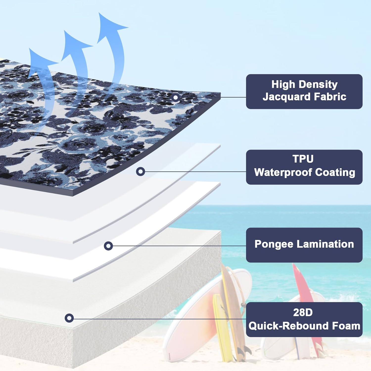 Favoyard Outdoor Chair Cushion 22 x 22 x 3 In Waterproof Pattern Fade Resistant Cushions for Patio Furniture with Removable Cover Attach Straps 28D Foam Insert Cushions Pads for Seat Sofa Couch 2 Pack