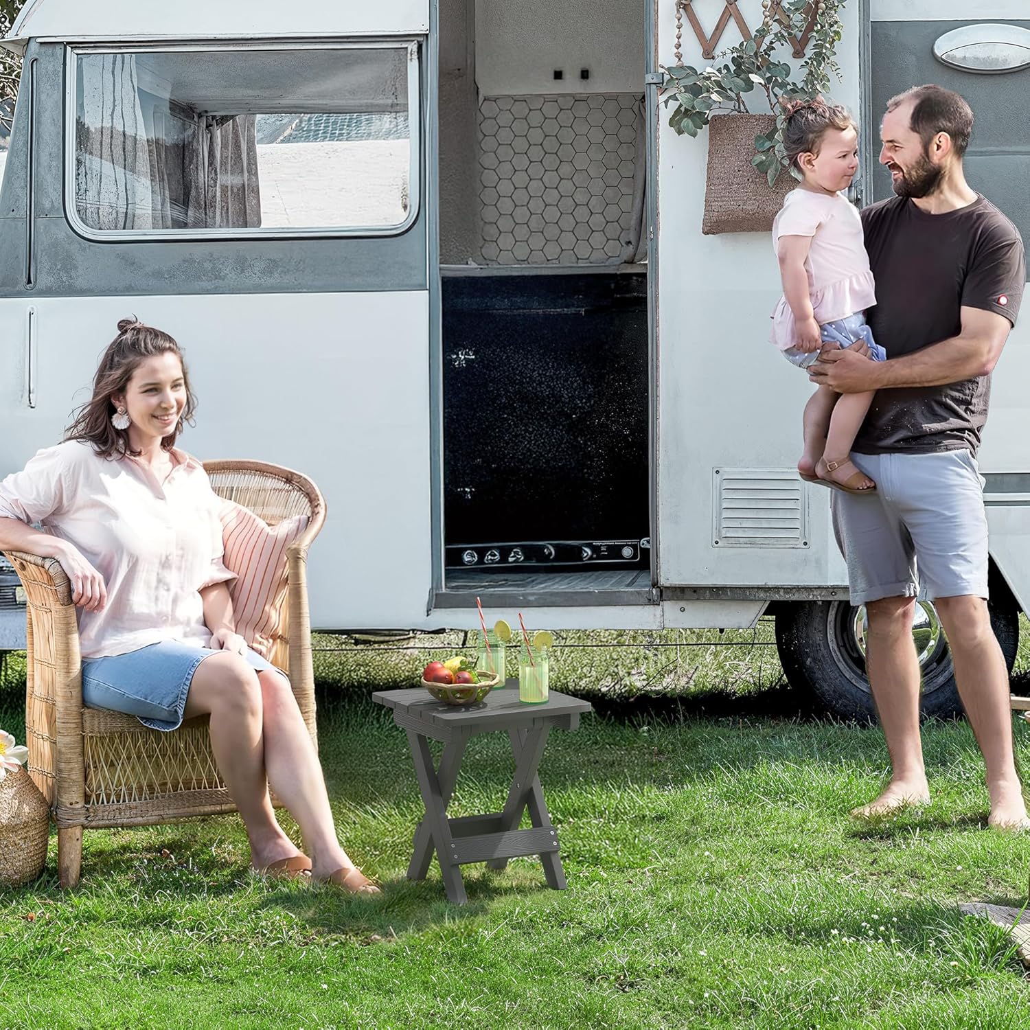 - 𝗙𝗼𝗹𝗱𝗮𝗯𝗹𝗲 𝗢𝘂𝘁𝗱𝗼𝗼𝗿 𝗦𝗶𝗱𝗲 𝗧𝗮𝗯𝗹𝗲: The LUE BONA adirondack side table cleverly folds down to a smaller size, offering outdoor lovers an ideal way to maximize space when not in use