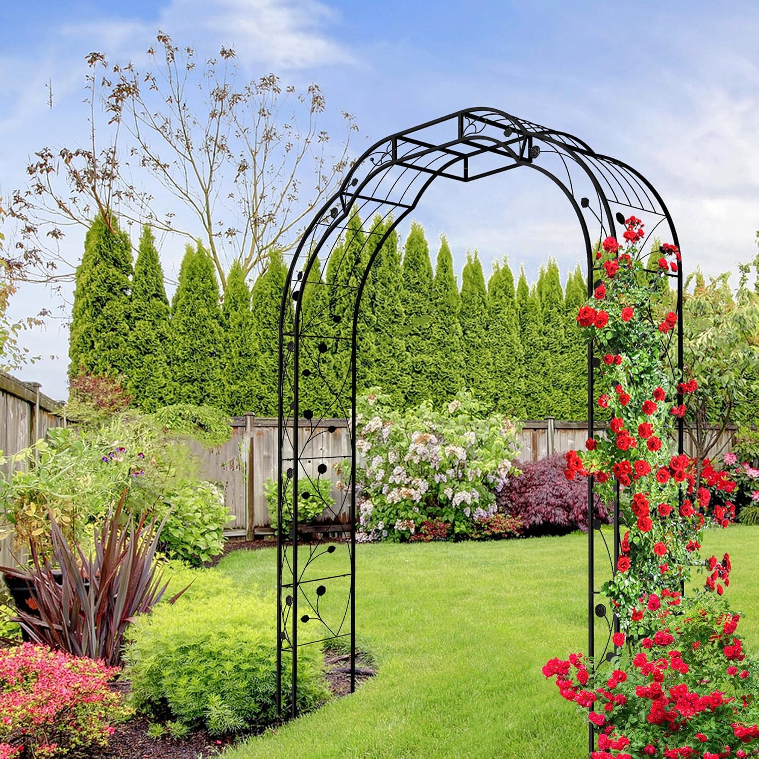 Metal Garden Arch 98.4" H Garden Arbor Trellis for Outdoor Climbing Plants Support Rose Lawn Tall Large Wedding Archway (Black, XL)