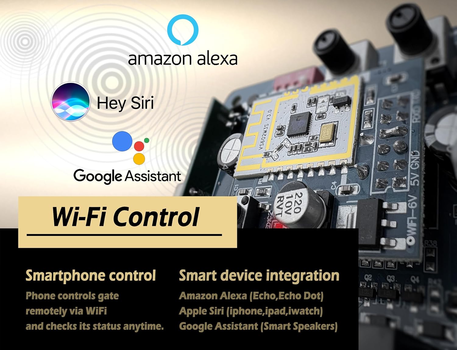 - 📱【Smart WiFi & Remote Control】- Take control of your gate from anywhere with the preinstalled WiFi module and "eWeLink" app (2.4GHz WiFi networks), providing remote operation via your smartphone. Also included are 2 remote controls (with 12V 27A batteries), offering a range of up to 100ft for added convenience. This opener supports up to 40 remotes, making it ideal for multi-user households or commercial applications