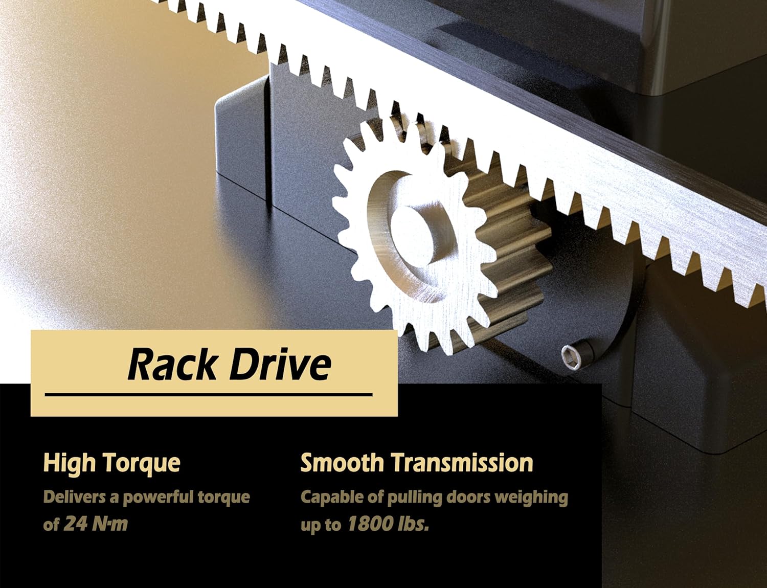 - 🛠️【Durable Rack-Driven System】- Built to last, this sliding gate opener features 8pcs of heavy-duty 1.64ft steel gear racks (13.12ft total), offering superior durability, rust resistance, and long-term reliability. With a quiet operation (≤45 dB) and minimal maintenance, it operates efficiently in temp. ranging from -13℉ to 131℉, making it perfect for all weather conditions.