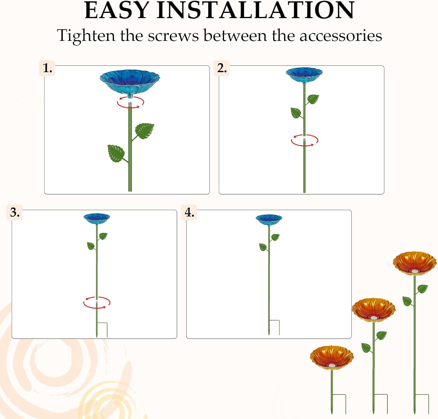 - Simple installation: Butterfly water station for garden are easy to install. Just tighten the screws between the flower head and the branch. No installation tools are required and it can be completed in a few seconds.