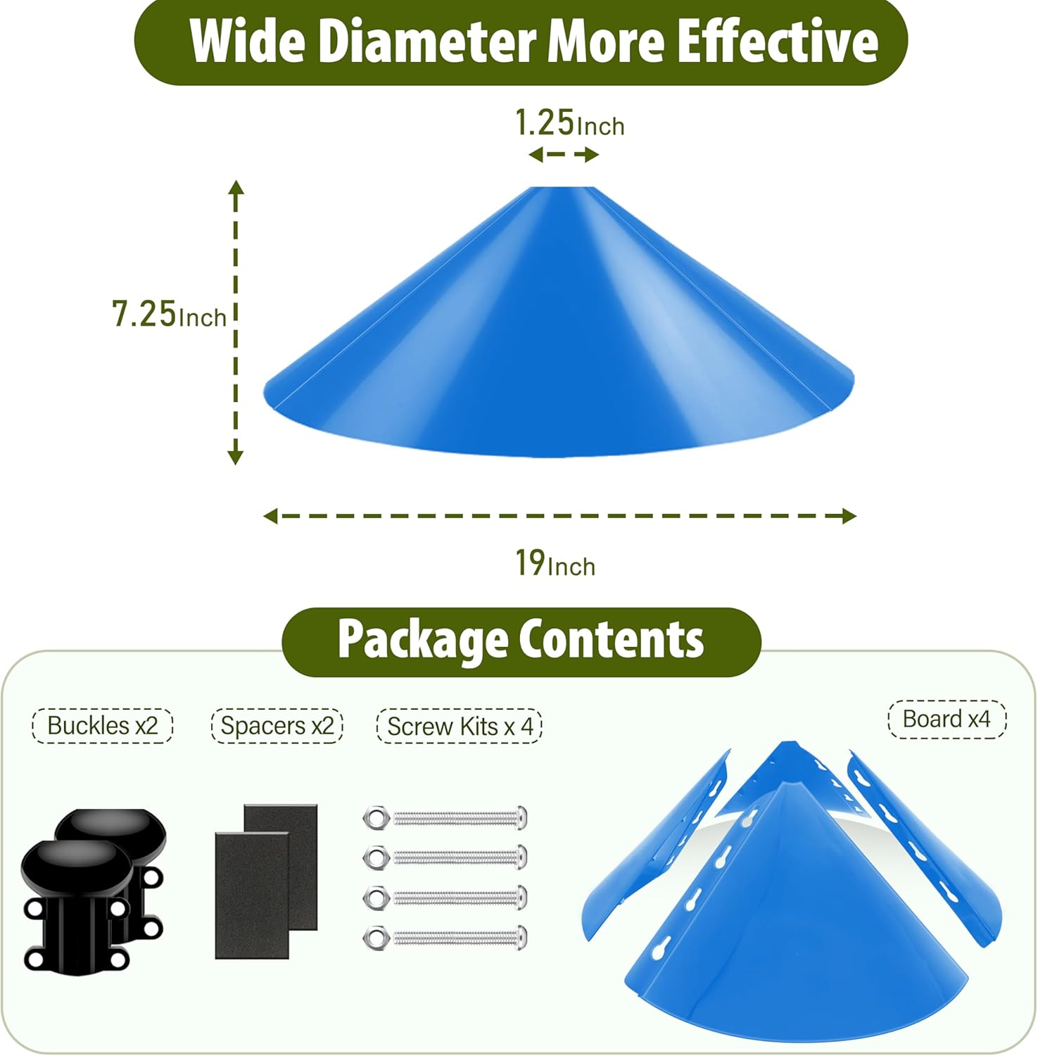 - [Reasonable Size] Wide 19" Diameter,The squirrel repellent easily attaches to any existing bird house pole or shepherd's hook and also protects hanging bird feeders. All hardware and installation instructions are included.