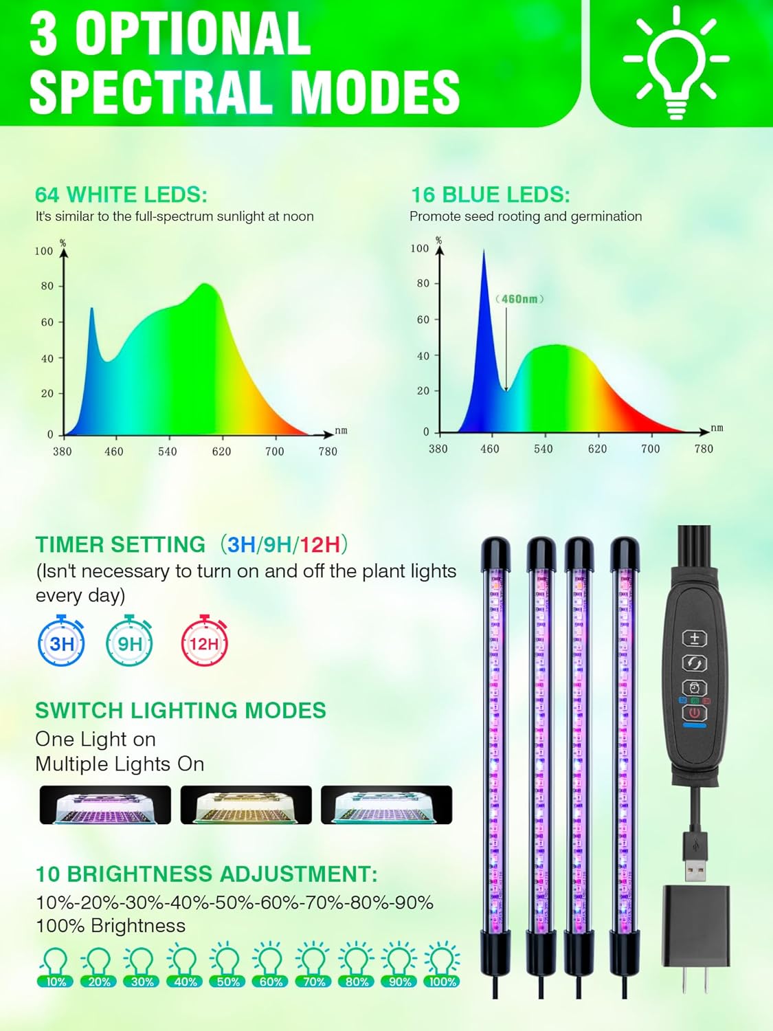 - EMBEDDED ADJUSTABLE LED PLANT GROW LIGHT: Equipped with 48 high-efficiency beads per seedling tray, these LED strips simulate natural sunlight for optimal seedling growth. With adjustable brightness and timer functions, it meets the light conditions your plants need most at different stages, promoting faster, healthier growth.