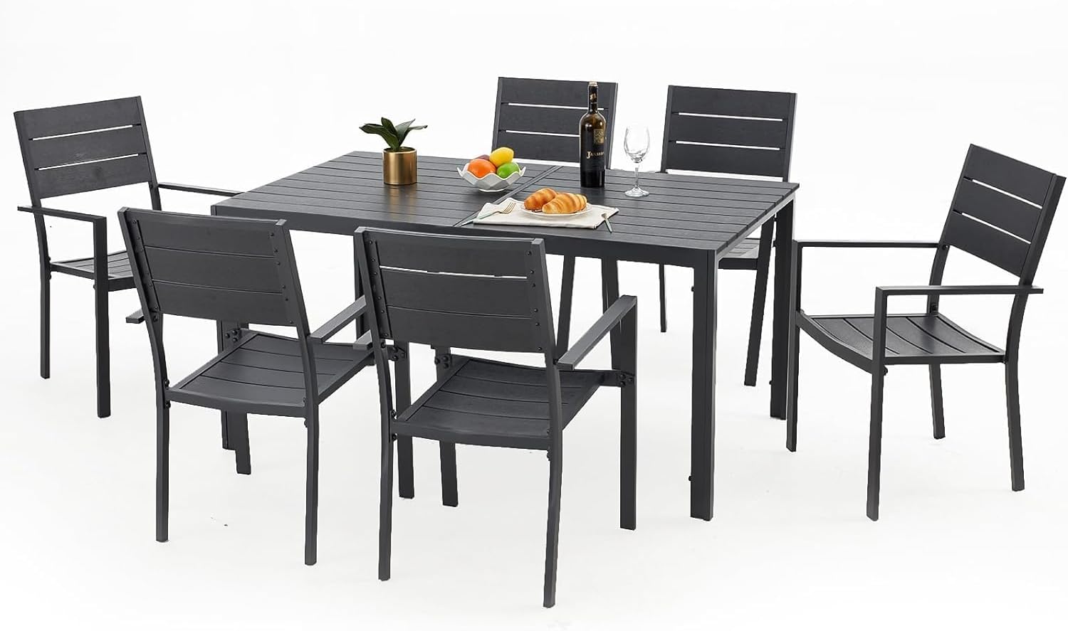 - DURABLE ALUMINUM FRAME: The outdoor dining table is made of powder-coated aluminum frame which is lightweight and rust proof for long lasting use.