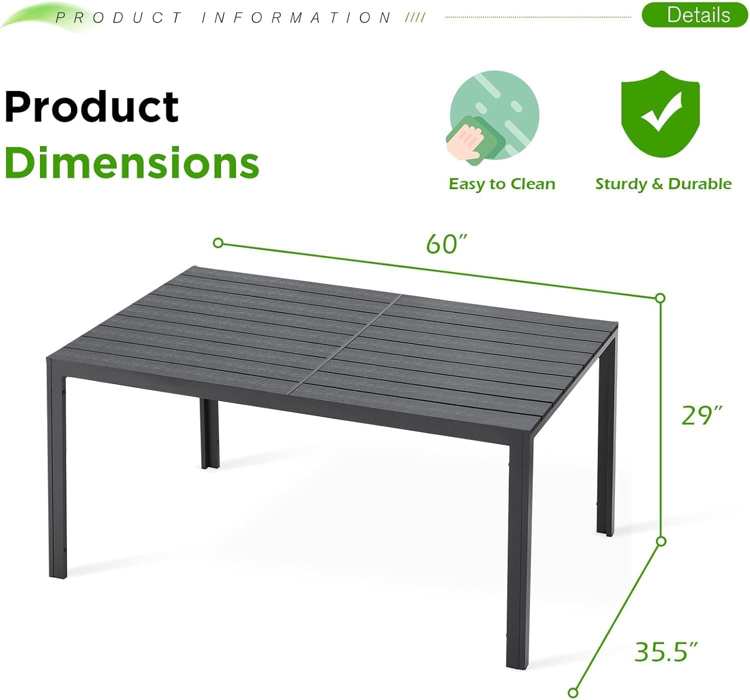 - SPACIOUS DINING AREA: The large rectangular 60''x35.5'' tabletop perfect for 6-people family dinner and party. Suitable for garden, backyard, deck, bistro and indoor places.