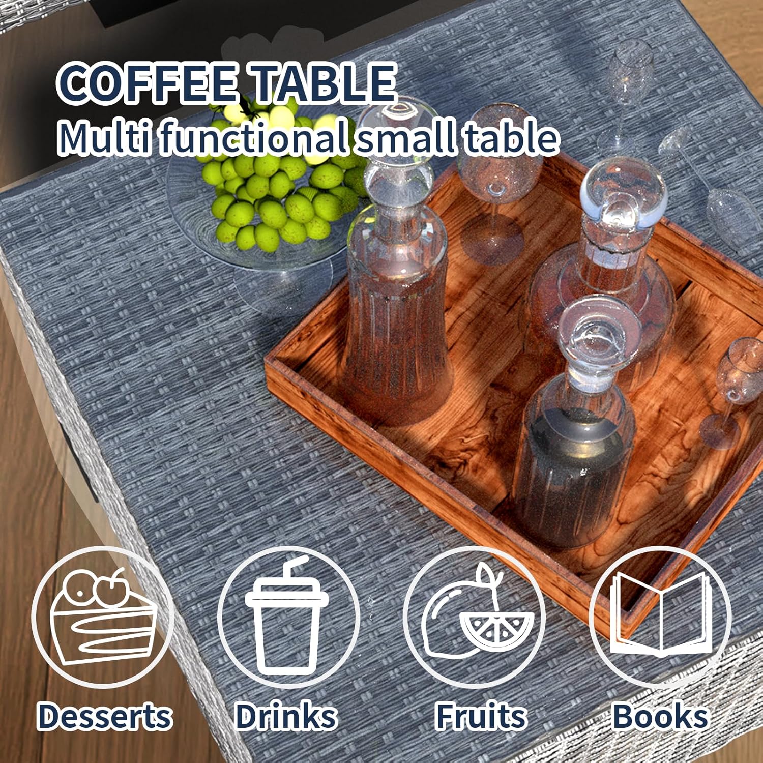 - 7-Piece Set: This patio set includes four center sofas, two corner sofas, and a functional coffee table. Whether you're hosting a gathering or enjoying a quiet moment outdoors, this set provides comfortable seating and a convenient surface for drinks, snacks, or decor