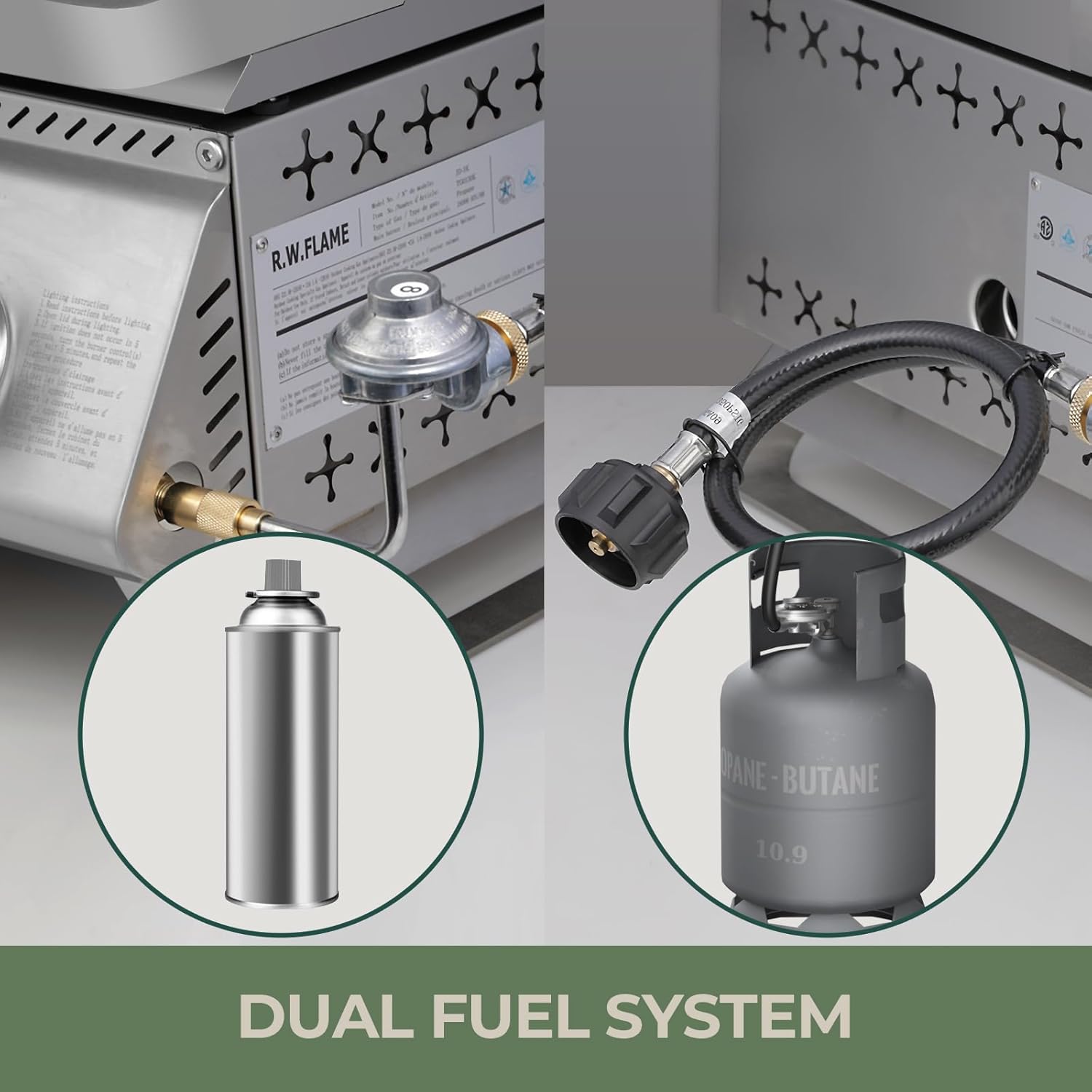 - Durable material:304 stainless steel and heat-resistant material.The high-quality 304 stainless steel material not only makes the propane gas grill look more textured, but also ensures it is more durable and suitable for all kinds of patio barbecue,rv, picnics,outdoor camping and BBQ