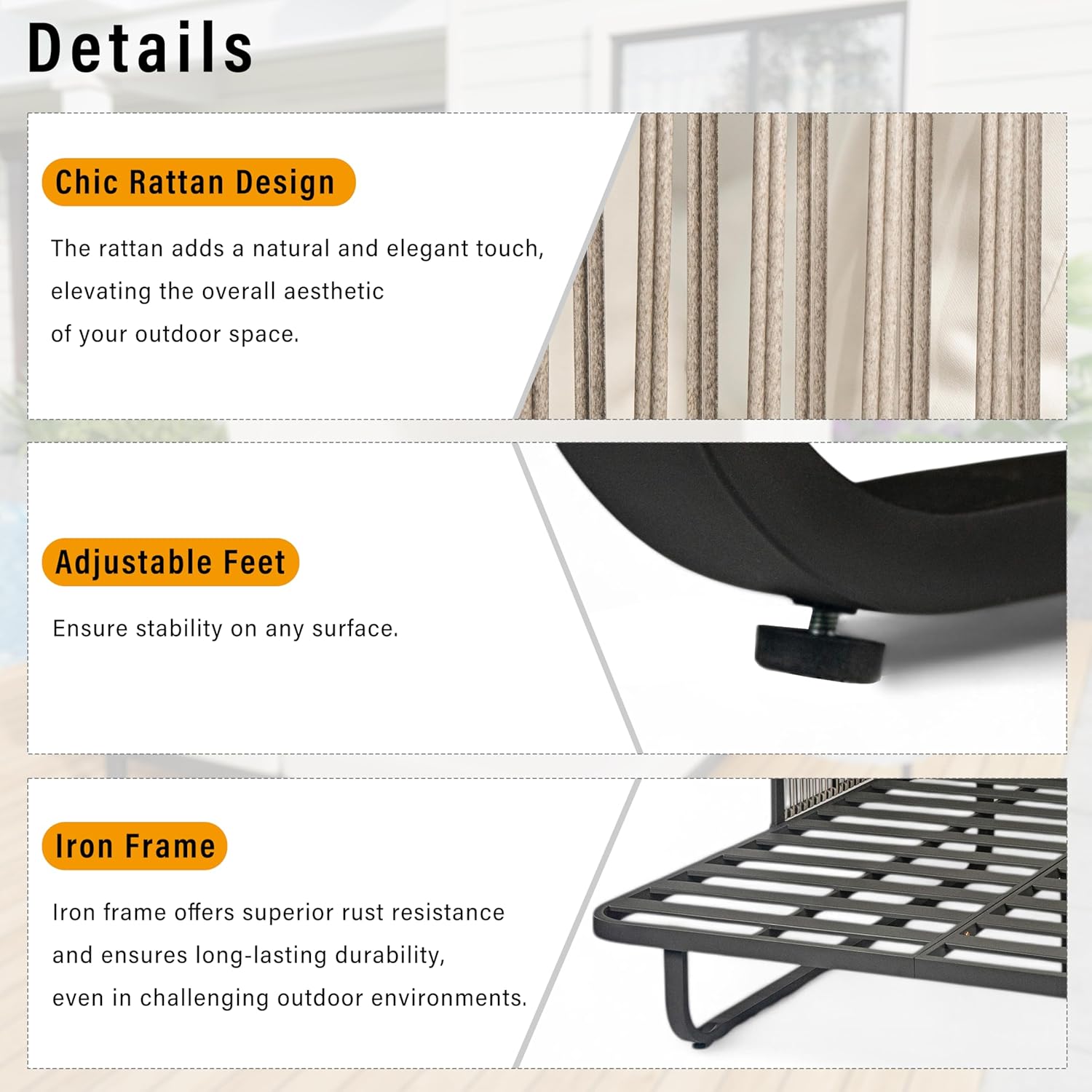 - 💗 Chic Rattan Side Design for a Modern Look - The daybed is accented with stylish, woven rattan details along the sides, creating a sophisticated, contemporary appearance. The rattan adds a natural and elegant touch, elevating the overall aesthetic of your outdoor space.