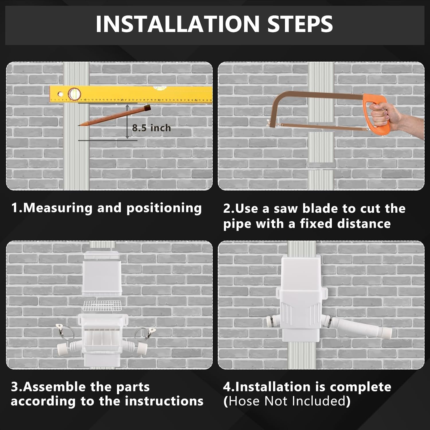 - 【Double Ear Fixed Design】Are you worried about the storm destroying your device? Now you don't have to worry about it, Our rainwater diverter for downspout for rain barrels uses double ear fixed mode, you can fix the rainwater catching system to the wall so that the pipe and rainwater collector is more firmly in the outdoor work. Rain diverter for downspout.