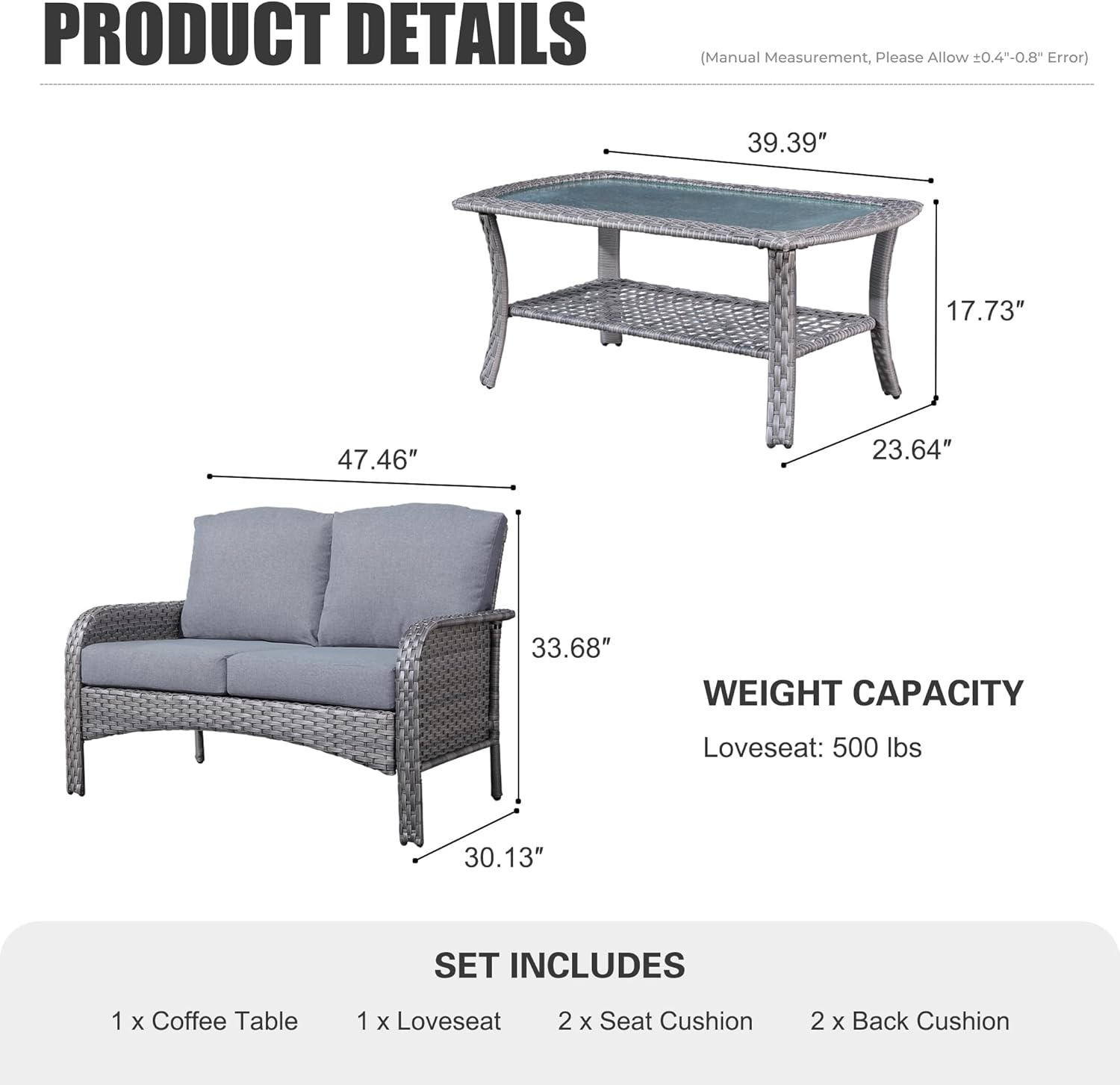 HOOOWOOO Patio Furniture Set,Outdoor High Back Loveseat Set,All Weather Wicker 2-Seater-Sofa Love Seat with Table,Dark Gray