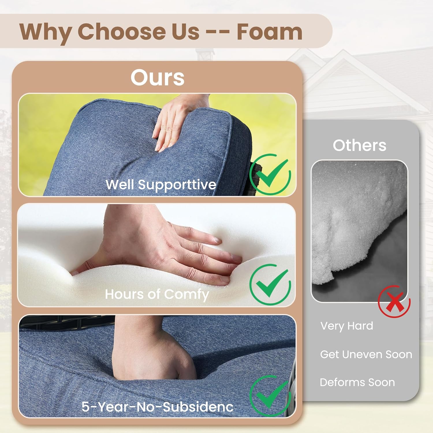 - Texture Woven Fabric: Cushions are covered by yarn dyed woven fabric, the yarns are dyed and UV treated before woven into fabric for out door fading resistant and water repellent. Looks and touches with high-end woven texture. No more worry about getting cheaply made thin print fabric. Detachable & washable