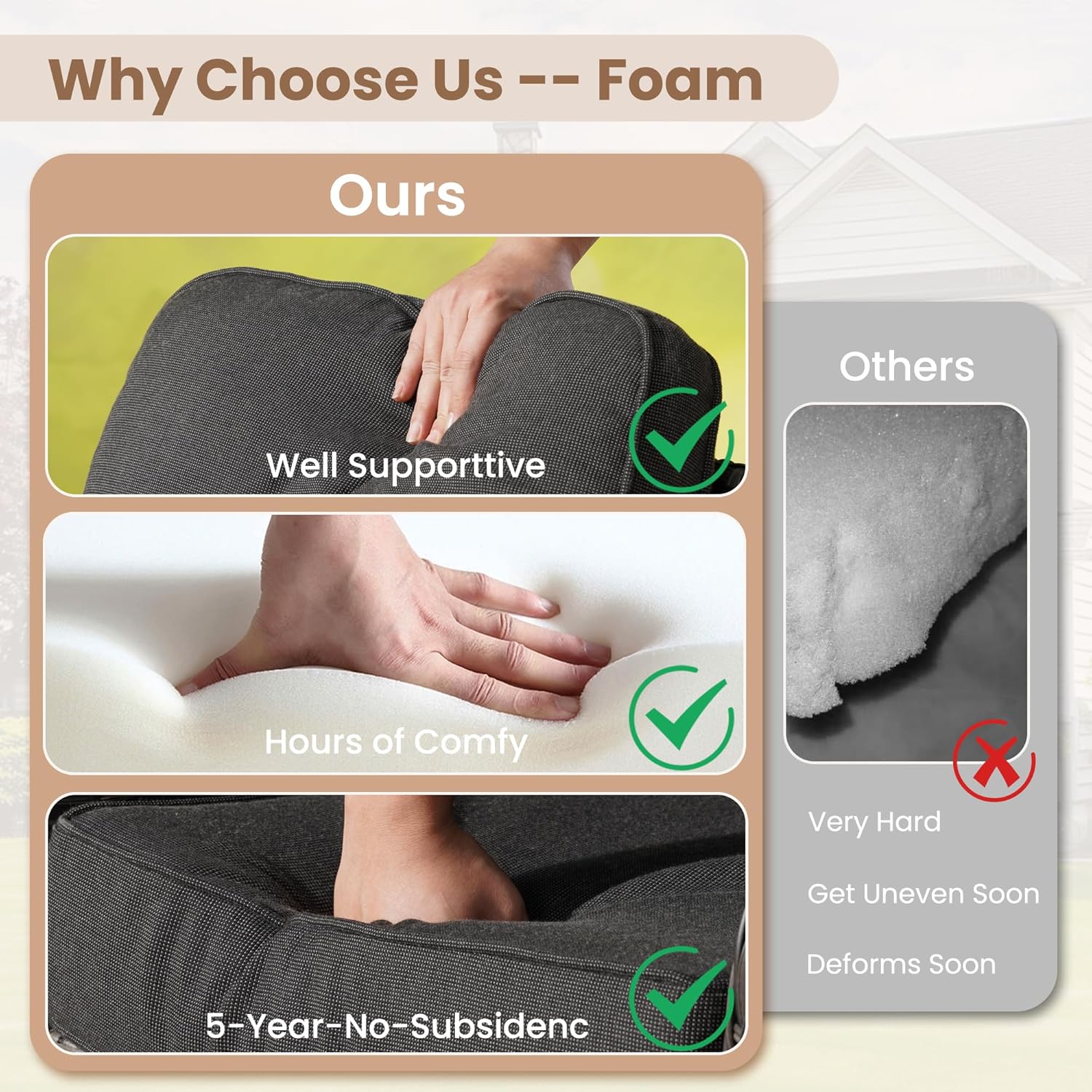 - High Density Foam &Fluffy Cotton: Selected brand new high density foam for high resilience and comfortable sitting for years. Brand new polyester cotton for fluffy back support for keeping shape for years