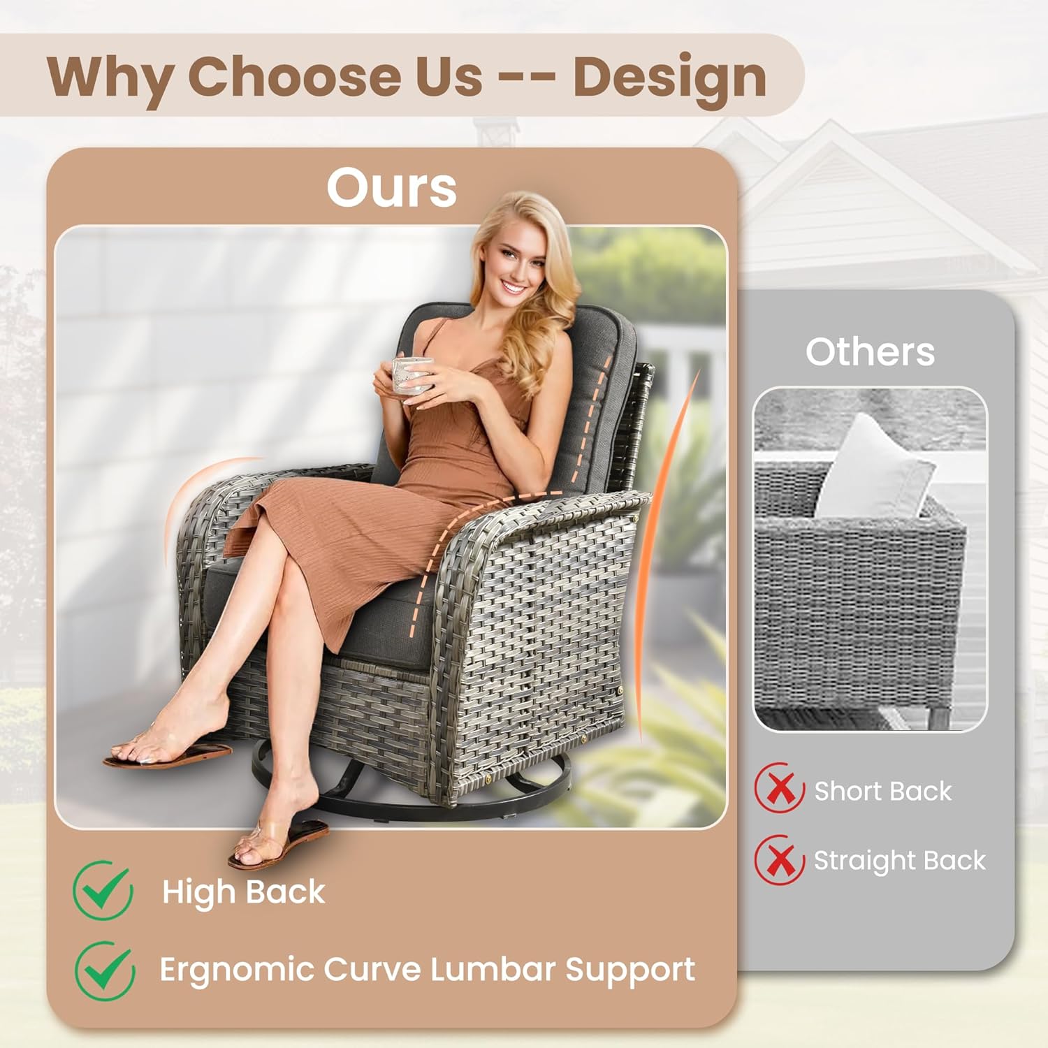 - Swivel Rockers: Designed for both 360° swivel and front to back rocking.Selected thicken and stable mechanism for smoother and quieter rotation as well as safer glider rocking