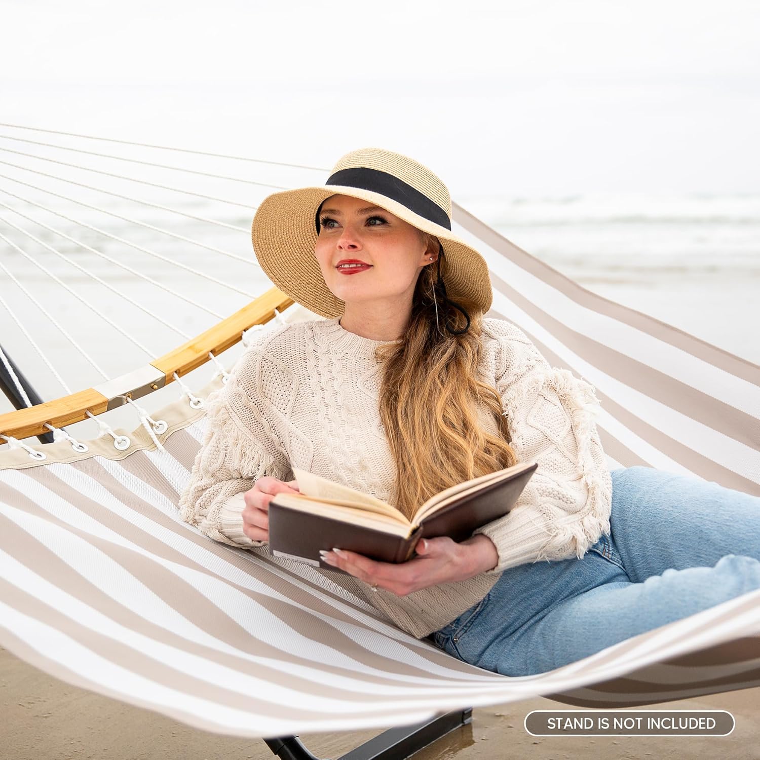 SUNCREAT Hammocks 14 FT Quick Dry Hammock Double Size with Spreader Bar, 2 Person Hammock for Outdoor Patio Yard Poolside, 450 lbs Capacity, Light Gray
