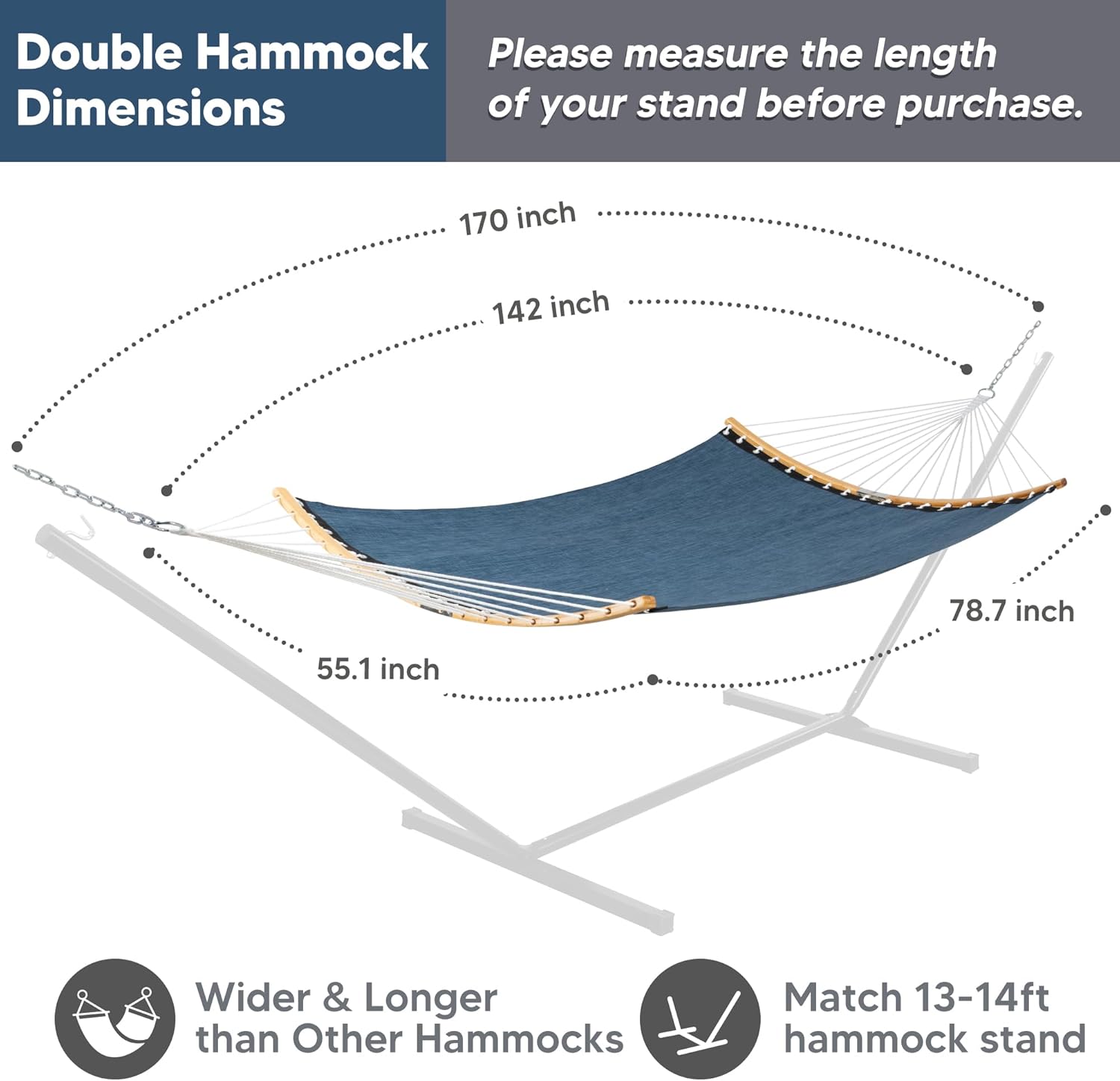 SUNCREAT Hammocks Two Person Tree Hammock, Heavy Duty Curved Bar Hammock for Poolside, Garden, Backyard, Patio, 450lbs Capacity, Navy