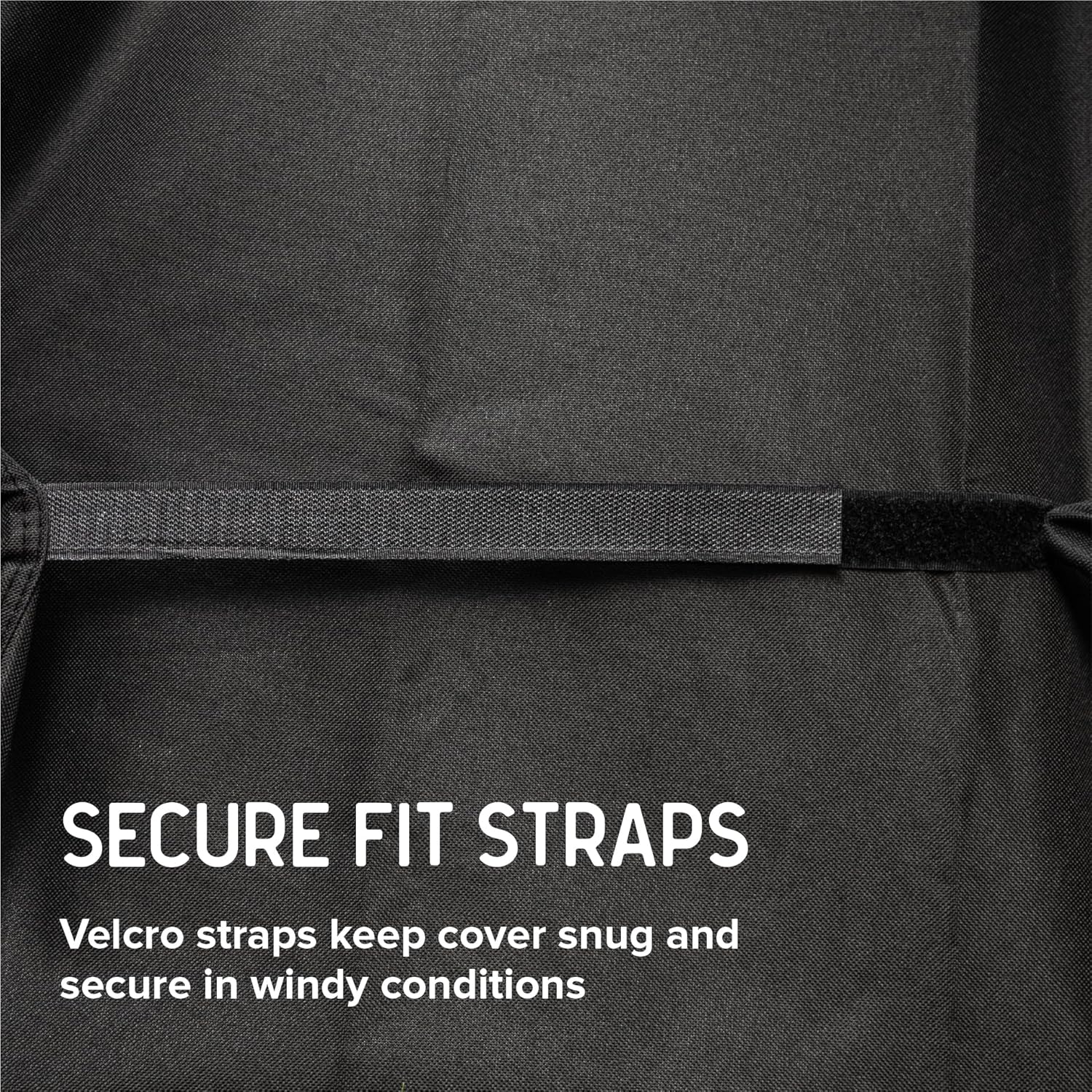 - 【DURABLE POLYESTER BUILD】Made from heavy-duty polyester, this BBQ grill cover for outdoor grill resists daily wear and tear. The built-in pouch stores small accessories to protect smaller items from the seasons.