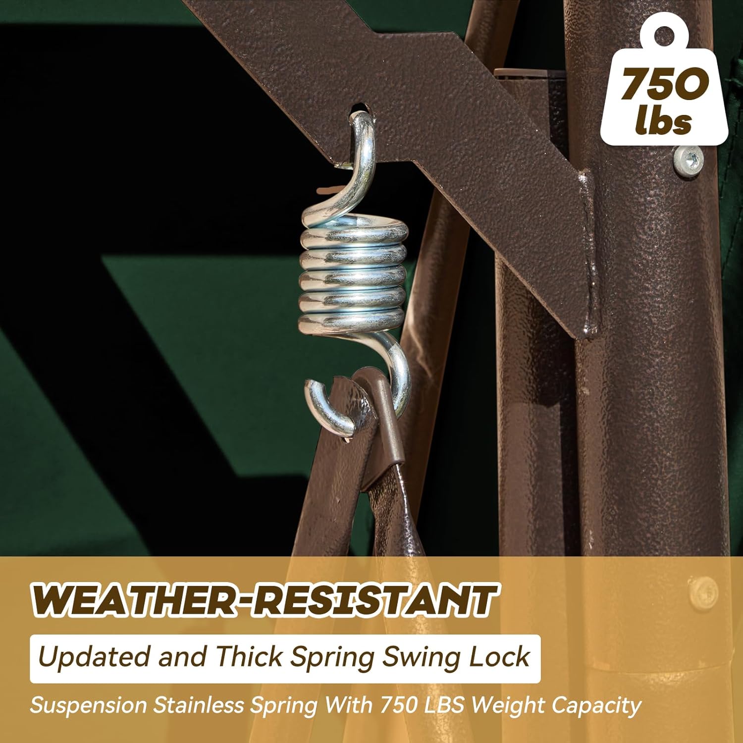 - 【Sturdy and Safe Construction】: The maximum weight capacity of porch swing is 750 pounds, our glider swing is designed for 3 adults to sit comfortably. The swing outdoor has a reliable buckle on backrest, ensuring stability and preventing any unwanted swinging. The double protection of 3 seat garden swing is designed for preventing accidental tipping.