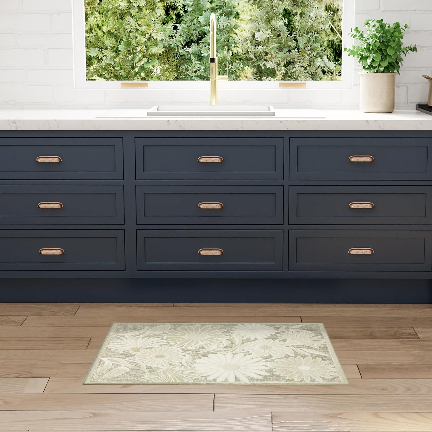- Floral outdoor rug adds a subtle sense of depth to your space