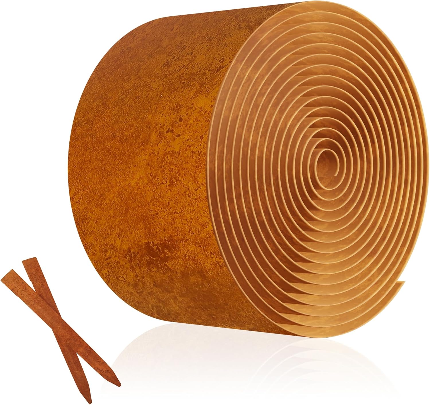 Metal Garden Landscape Edging with 8Pcs Stakes, 4.5" x 25Ft Galvanized Steel Lawn Edgings Roll Flexible Coil Border for Landcaping,Flower Bed,Rusty