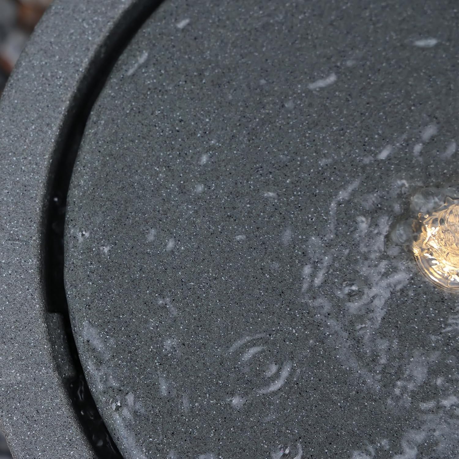 10.23” H Outdoor Water Fountain Made with Eco-Friendly Recyclable Materials, Polyethylene Round Bubbler Outdoor Fountain, Garden Decor with LED Light for Patio, Porch, Backyard