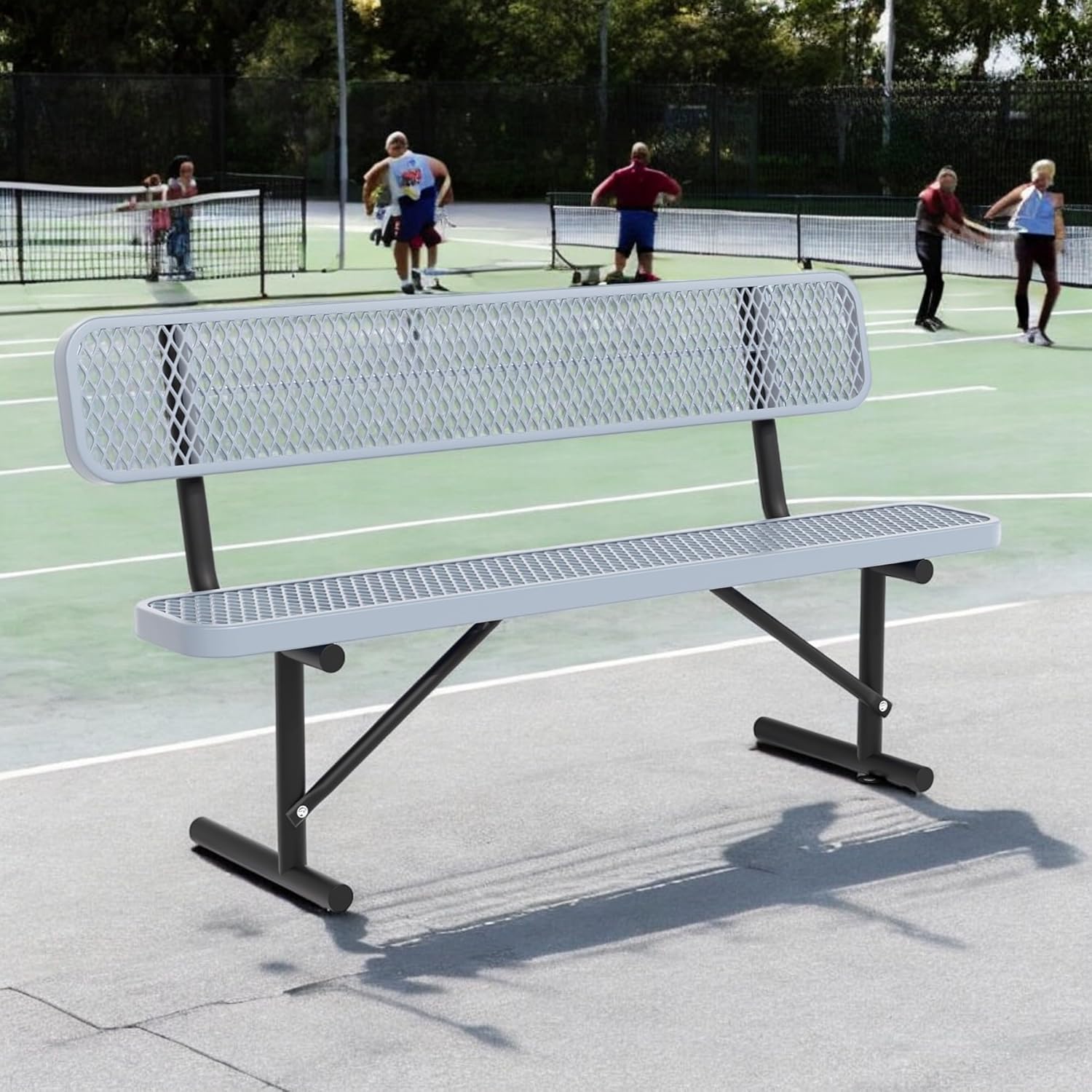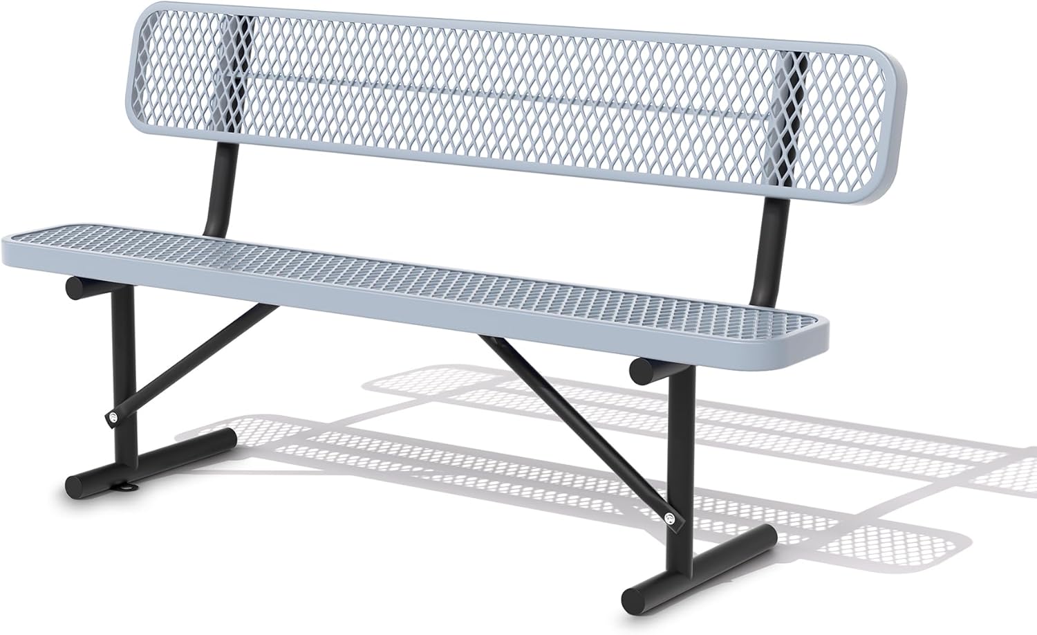 Heavy Duty Park Bench with Back Portable Frame, Outdoor Steel Bench with Backrest, Outdoor Park Bench Expanded Metal Mesh Bench for Lawn, Park, Deck, Garden, Patio, Porch, Black (Gray, 8FT)