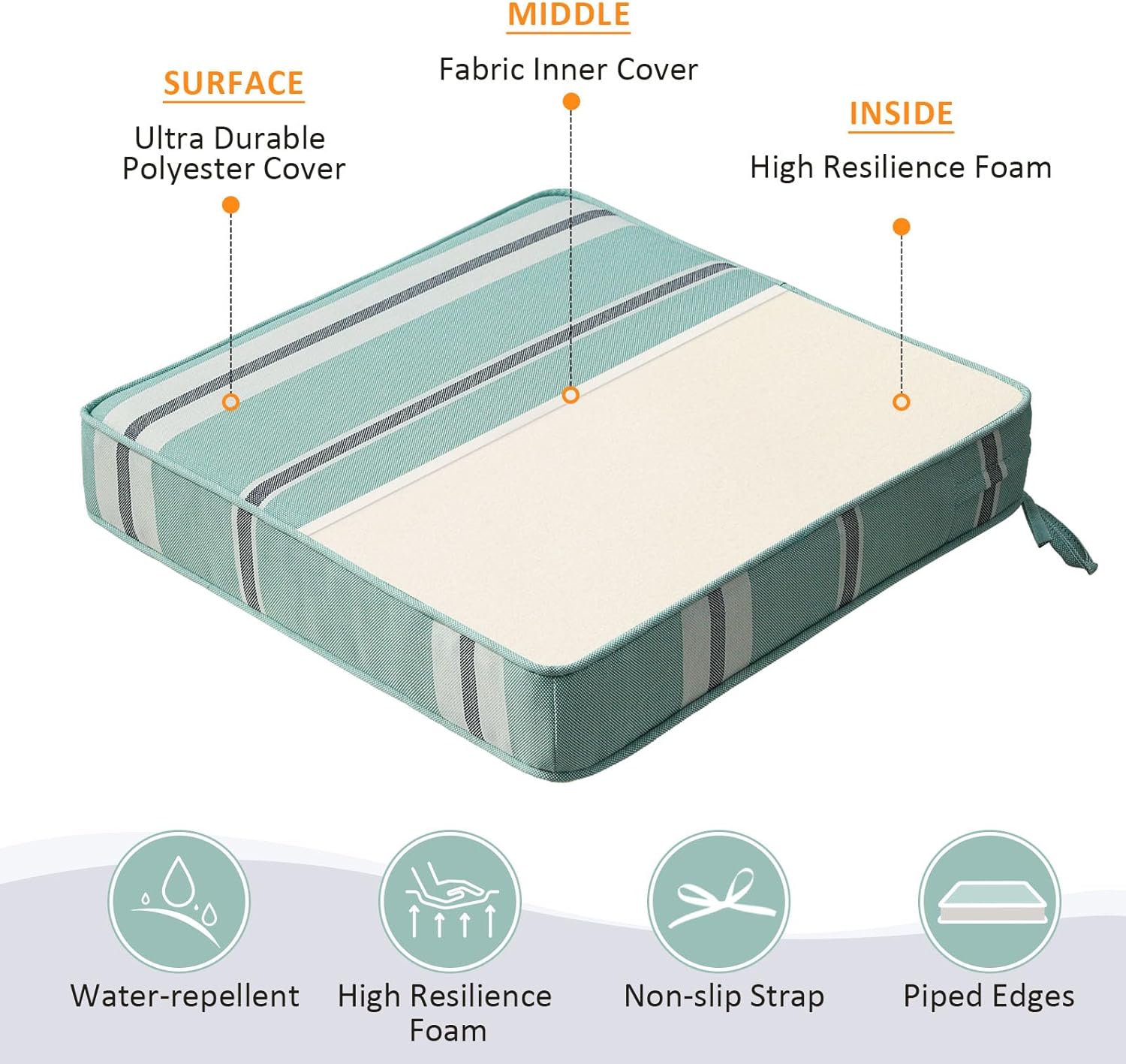 - 【High Resilience Foam】 The Unimatta chair cushions are filled with high-quality 100% foam, high-density sponge offers excellent support and long-lasing comfort. Whether you're enjoying a sunny afternoon or a cool evening, this cushion will keep you cozy.
