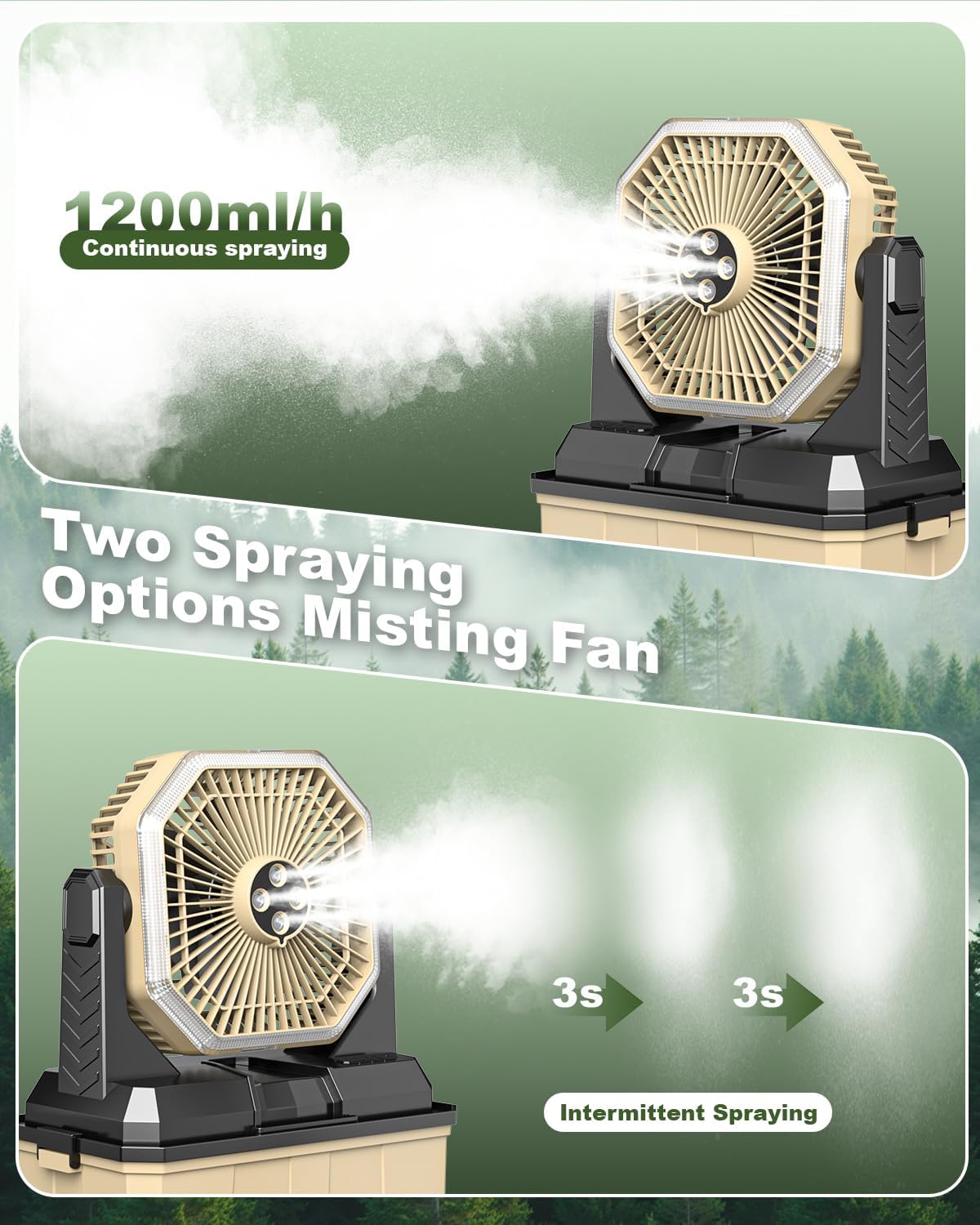 - 【Multi-core drive technology】 Independent control of fan and misting system and light system. The combination of continuous misting + 3rd wind speed + 3rd light can last for 5 hours, which can meet the rapid cooling requirements. Engineering grade ABS material can withstand extreme environments for stable operation in construction sites, farms and other scenarios.