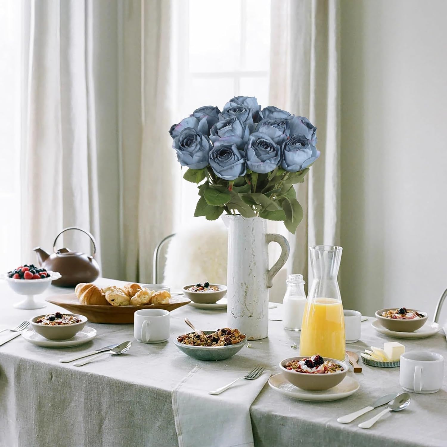 12 pcs Dusty Blue Roses Artificial Flowers Vintage Burnt Edge Rose 20" Realistic Silk Roses Bouquet with Long Stem for Wedding Party Floral Centerpieces Decoration (Dusty Blue)