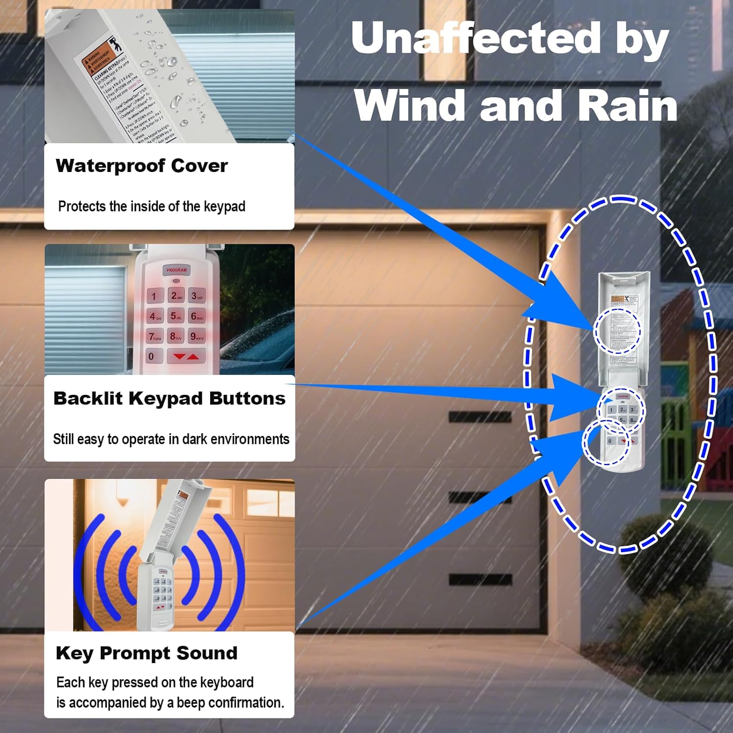 Universal Garage Door Opener Keypad Compatible with Genie/Liftmaster/Chamberlain/Craftsman/Linear/Wayne Garage Door Opener Keypad Replacement Both Works for DIP Switch and Smart Learn Button