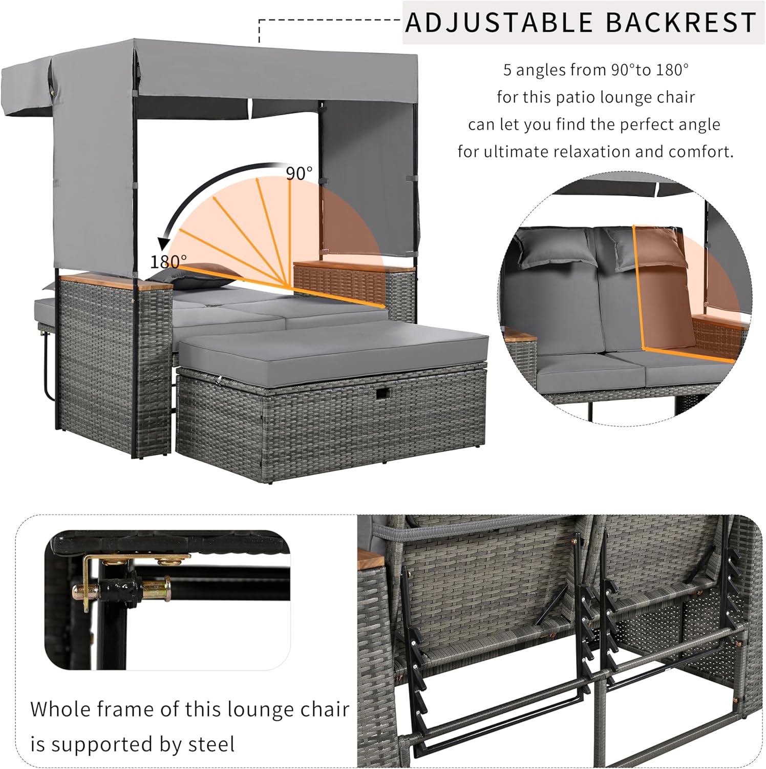 - ✔️ 5 Adjustable Backrest Positions: Designed with comfort in mind, this rattan outdoor daybed features 5 reclining angles, allowing you to find the perfect position whether you're lounging, reading, or sunbathing