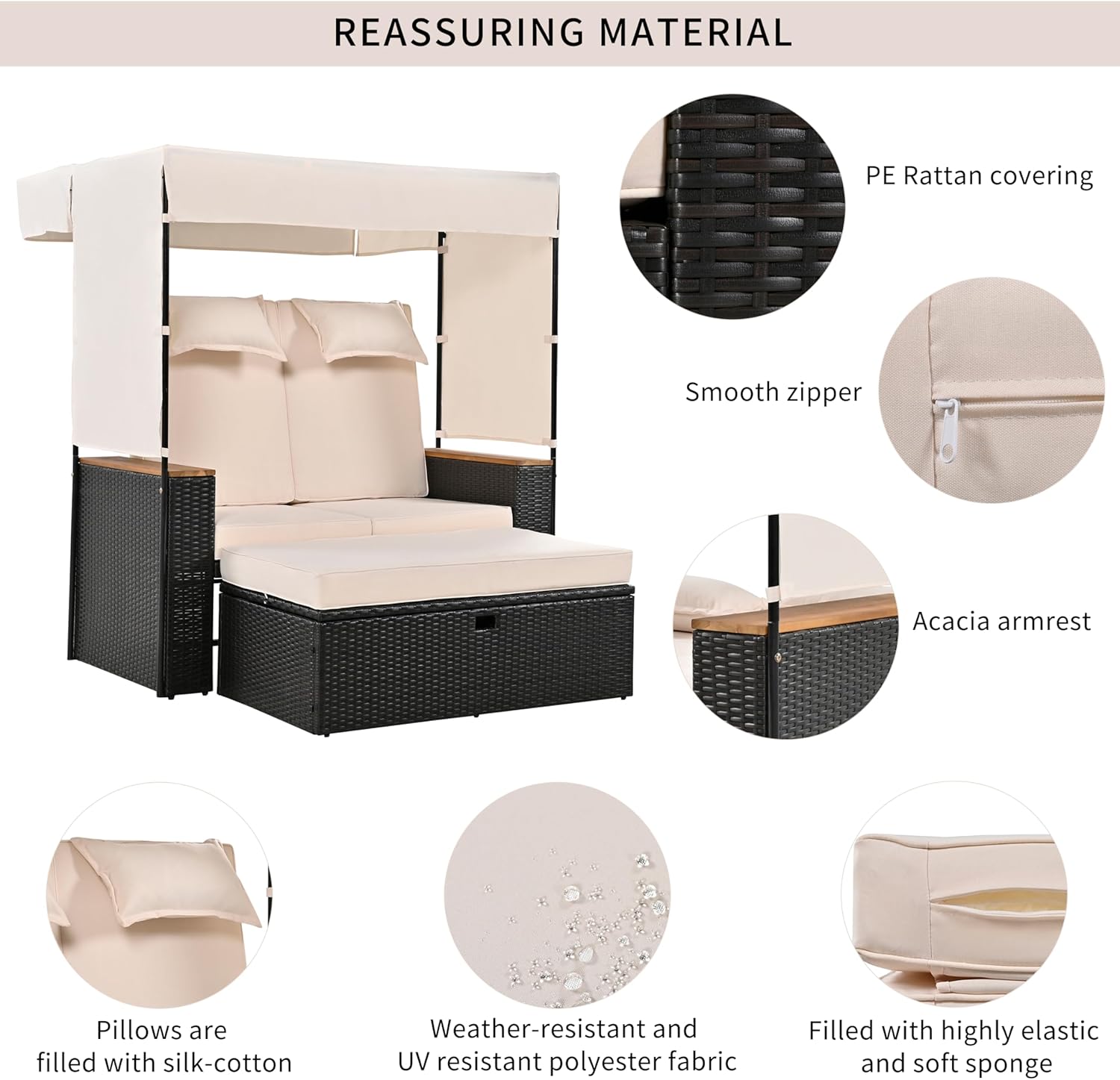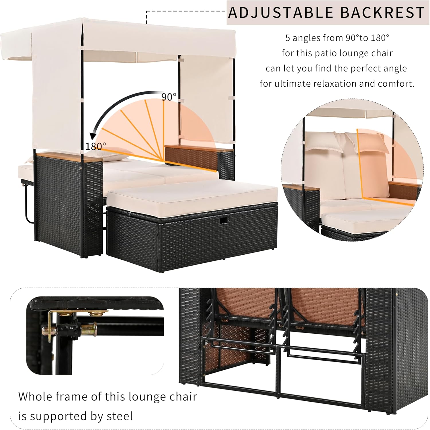 - ✔️ 5 Adjustable Backrest Positions: Designed with comfort in mind, this rattan outdoor daybed features 5 reclining angles, allowing you to find the perfect position whether you're lounging, reading, or sunbathing