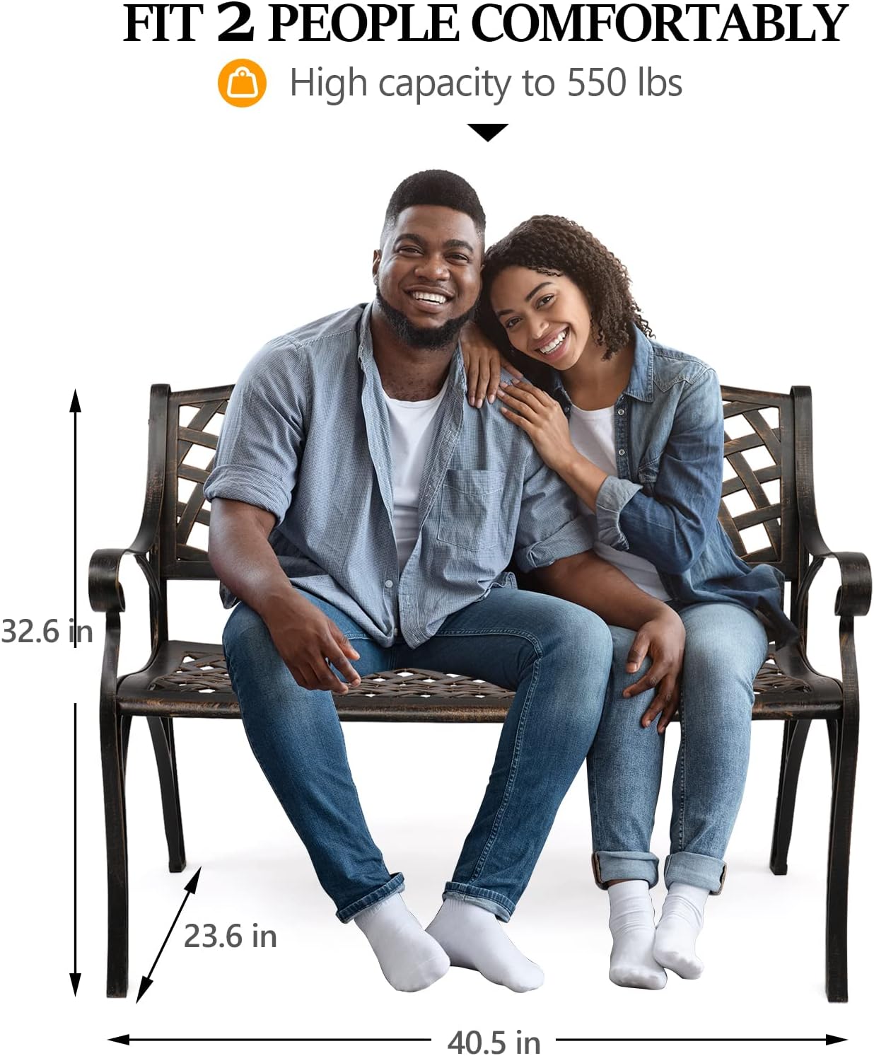 VINGLI 40.5" Patio Garden Bench,Anti- Rust Cast Iron Cast Aluminum Frame for Outdoor Path Yard Lawn Work Entryway Decor Deck (Brown)