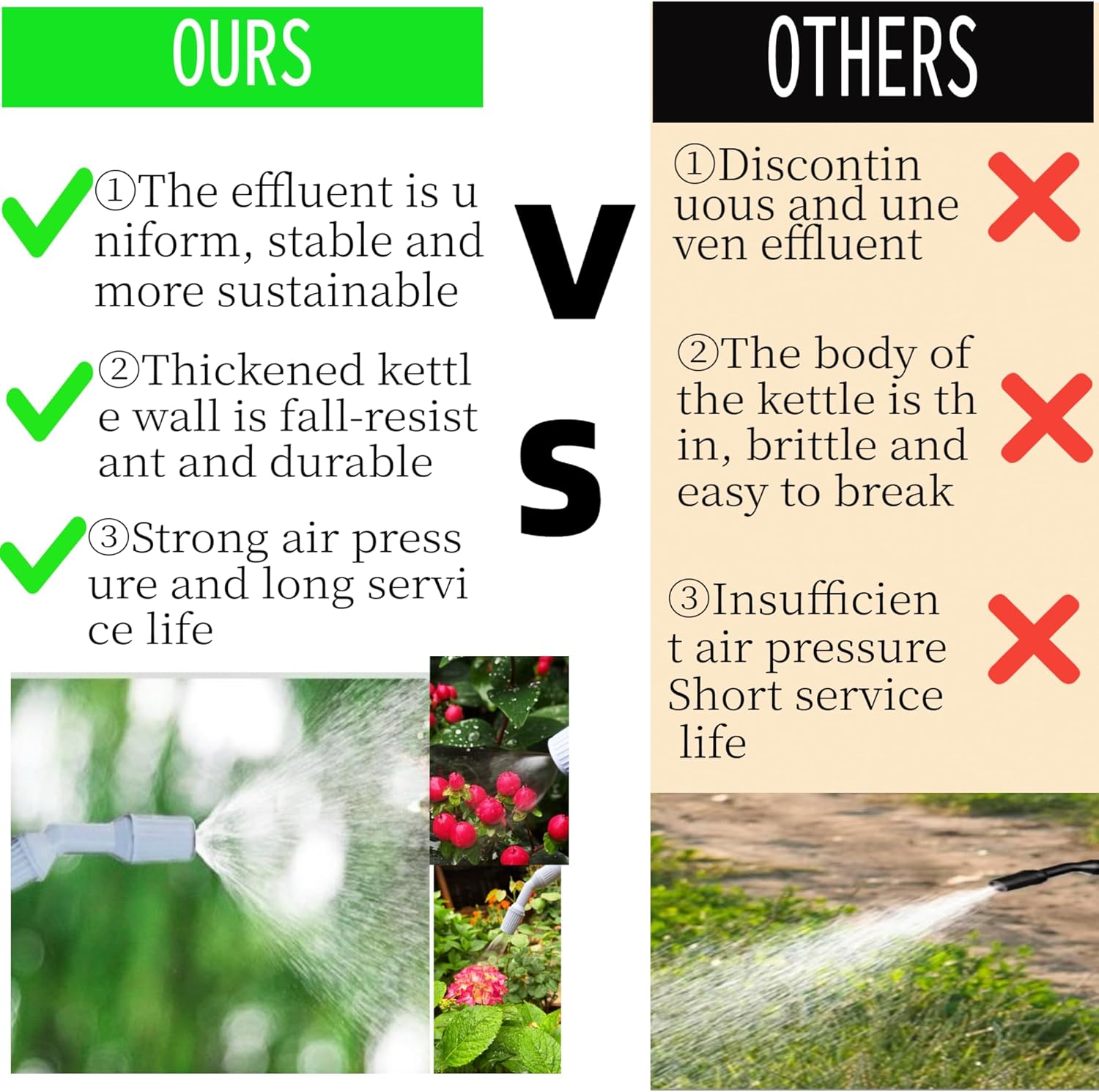 - 【Durable and non - deformable】: Built Tough for Lasting Reliability Crafted with a reinforced, thickened tank, this sprayer offers unparalleled durability. It resists deformation and withstands impacts, shrugging off dents, cracks, and leaks with ease. Engineered to maintain peak performance over time, it's the go-to outdoor tool you can trust for years of worry-free use
