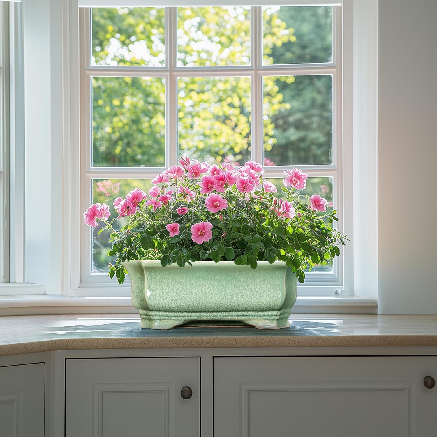 Bonsai Pots - 13.7 Inch Rectangle Ceramic Pots for Plants, Large Succulent Planter with Drainage Hole, Decorative Planters for Indoor Outdoor, Garden House Decor, Housewarming Gifts, Green