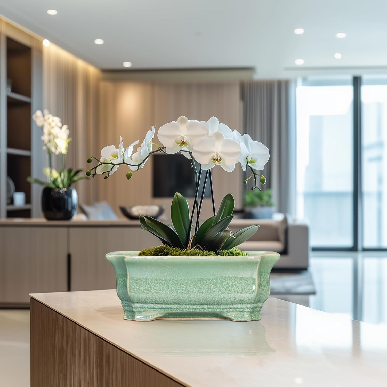 - Planter Design: Featuring a beautiful blue reactive glaze finish and elegant rectangluar appearance, this bonsai pots combines practicality with beauty, suitable for table, desk, windowsill, shelves, living room, bedroom, bathroom, porch, study, office, patio, balcony, zen garden, any indoor or outdoor space