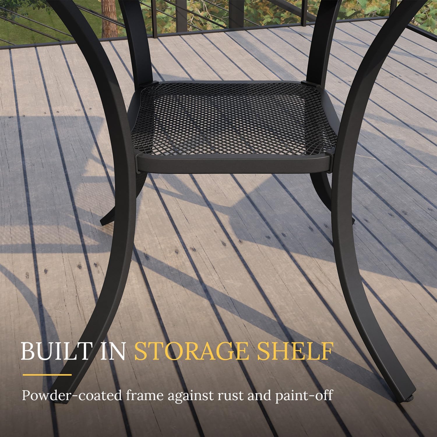 VICLLAX 27.5" Outdoor Round Patio Table for Lawn Garden, All Weather Metal Round Patio Dining Table with Storage Shelf, 2 Person Small Patio Table, Walnut Wood Grain