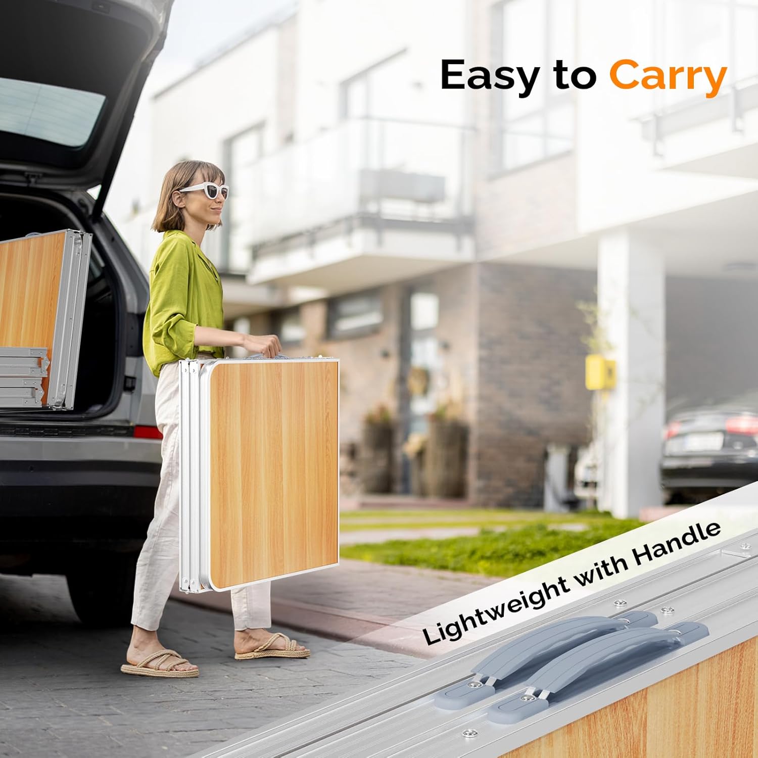 - NO ASSEMBLE NEED: The table is assembled. It can be opened and folded in a few second which is very easy and convenient.