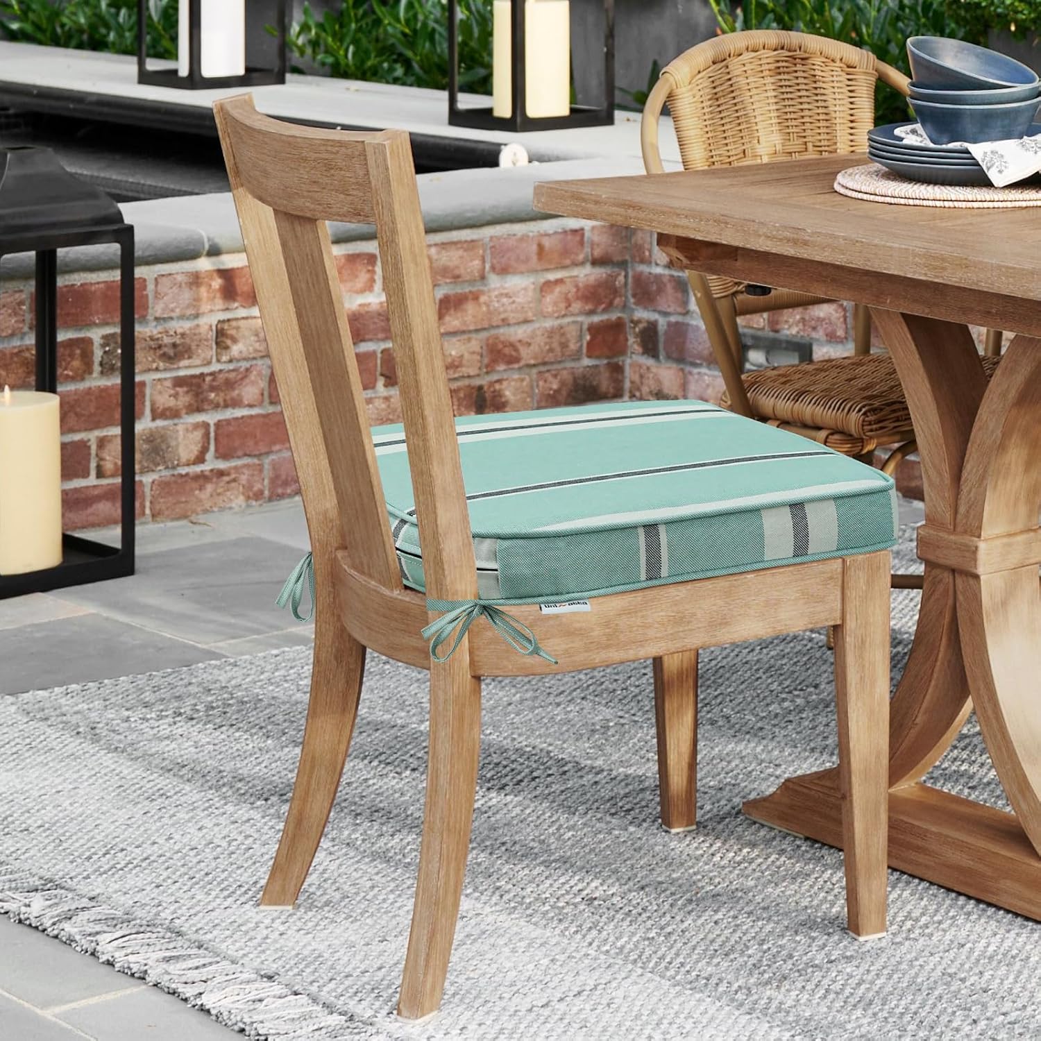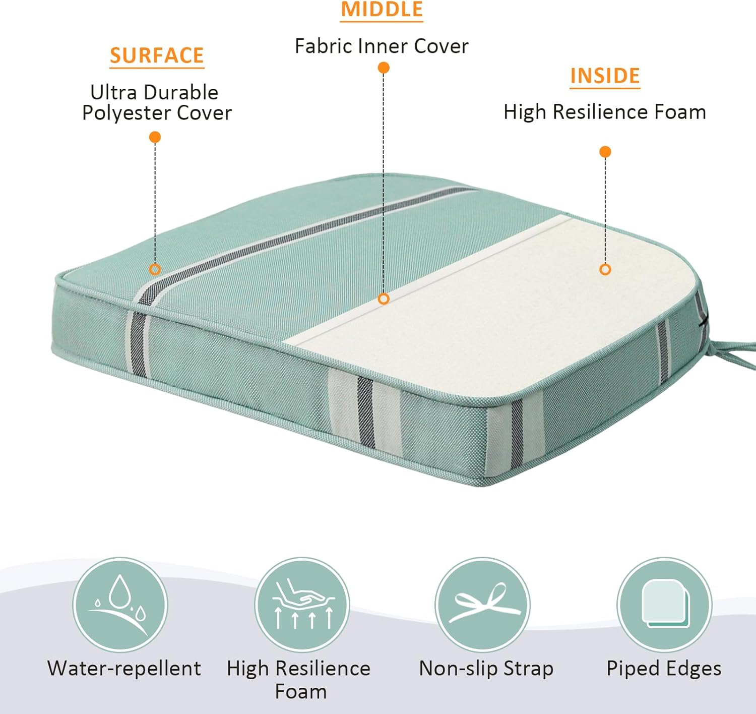 Round Corner Seat Cushions, 17" x 16" x 2", Set of 4, Indoor Outdoor Water Repellent Universal Chair Pads with Ties for Patio Furniture, Garden Deck Dining Chairs, Aqua Stripe