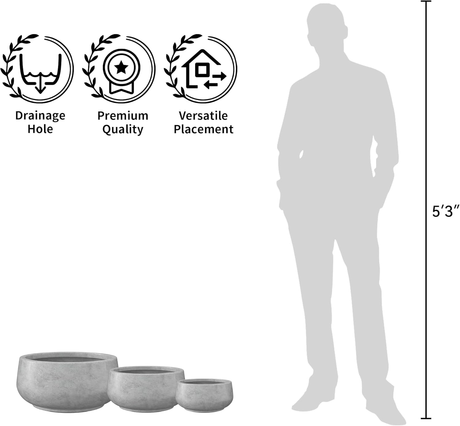 Kante 12.5" Dia Round Concrete Bonsai Planters, Outdoor Indoor Garden Plant Pot with Drainage Hole for Home, Patio, Garden, Concrete Gray