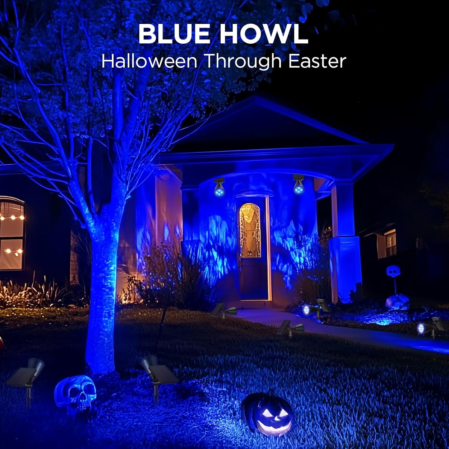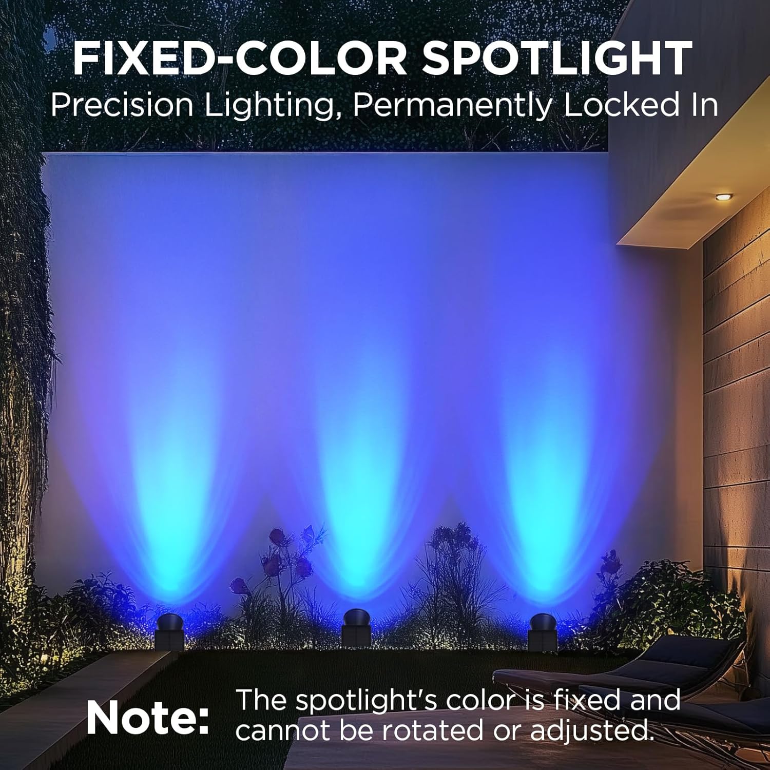 - Reminder: This package contains two fixed blue light spotlights with non-adjustable, permanent colors. Designed for versatile application, they can be used independently for a bold effect or combined with other colored spotlights to create vibrant festive displays and dramatic atmospheric ambiance.