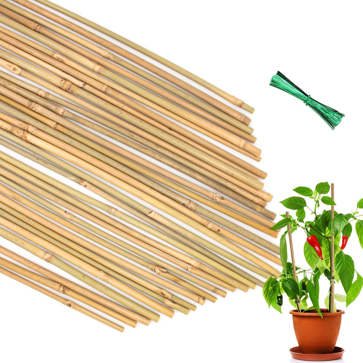 - Great Value Set with Accessories:Includes 35PCS natural bamboo stakes (18 inches long, 0.23–0.3 inches in diameter) and a 40P plant tiebacks—everything you need to support early plant growth. If you have any questions or issues, our team is here to assist you promptly.