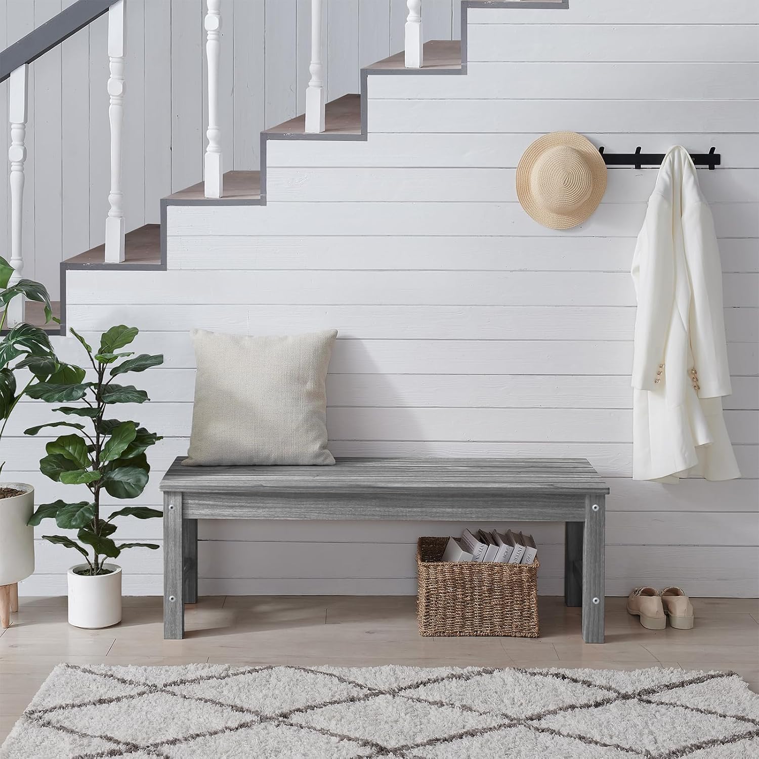 Psilvam 2-Person Outdoor Poly Lumber Patio Backless Bench, Fade-Resistant & Odor-Free Poly Lumber Patio Furniture, Weatherproof, Suitable for Garden, Porch and Park, 700 Lbs Support (1, Light Gray)