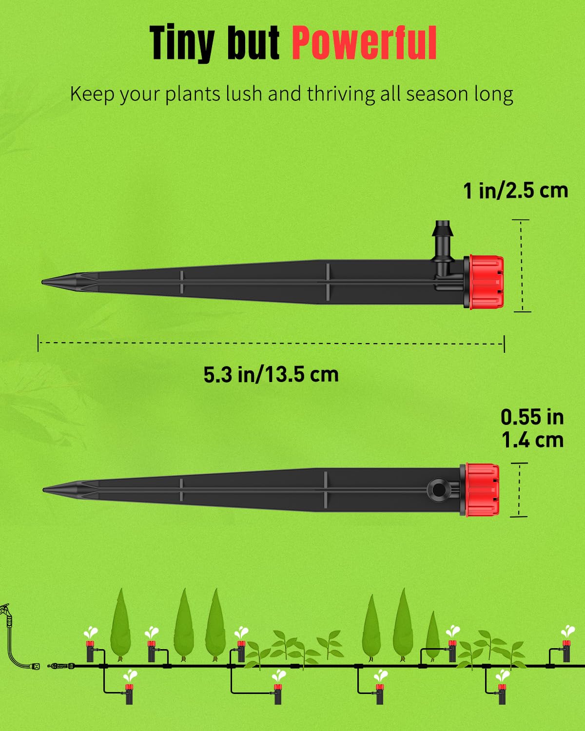 - Easy to Install: Soften the irrigation tubing by placing its end in hot water, making it easier to slide onto the drip emitter. Next, insert the emitter inlet into the tubing and push the stake into the soil for a secure fit