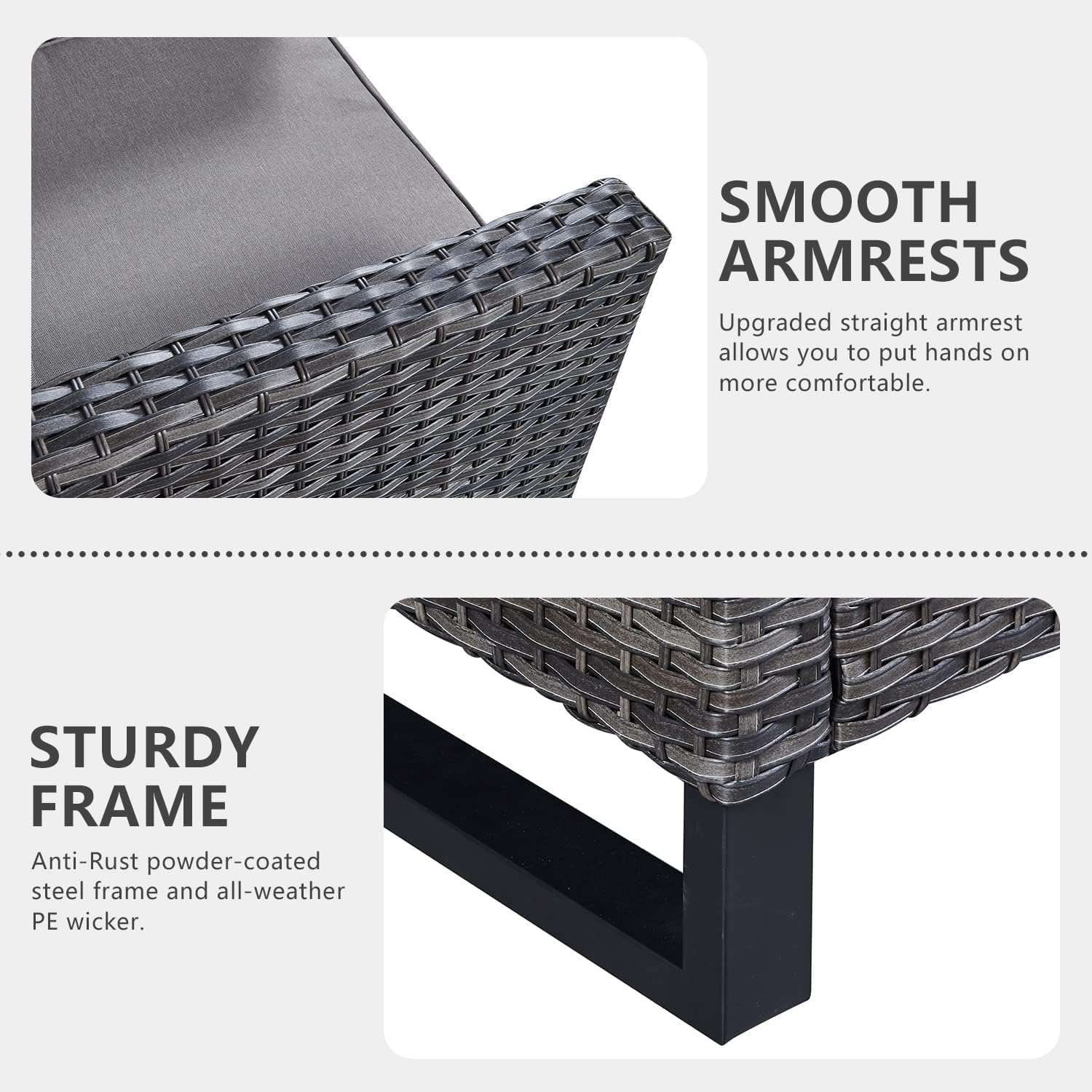 - 【All-Weather-Resistant Durability】Crafted with powder-coated rust-resistant steel frames and hand-woven UV-stabilized PE wicker, the patio set withstands outdoor elements. Water-repellent cushion covers and reinforced joints ensure stability in rain or humidity, tested for long-term outdoor use.