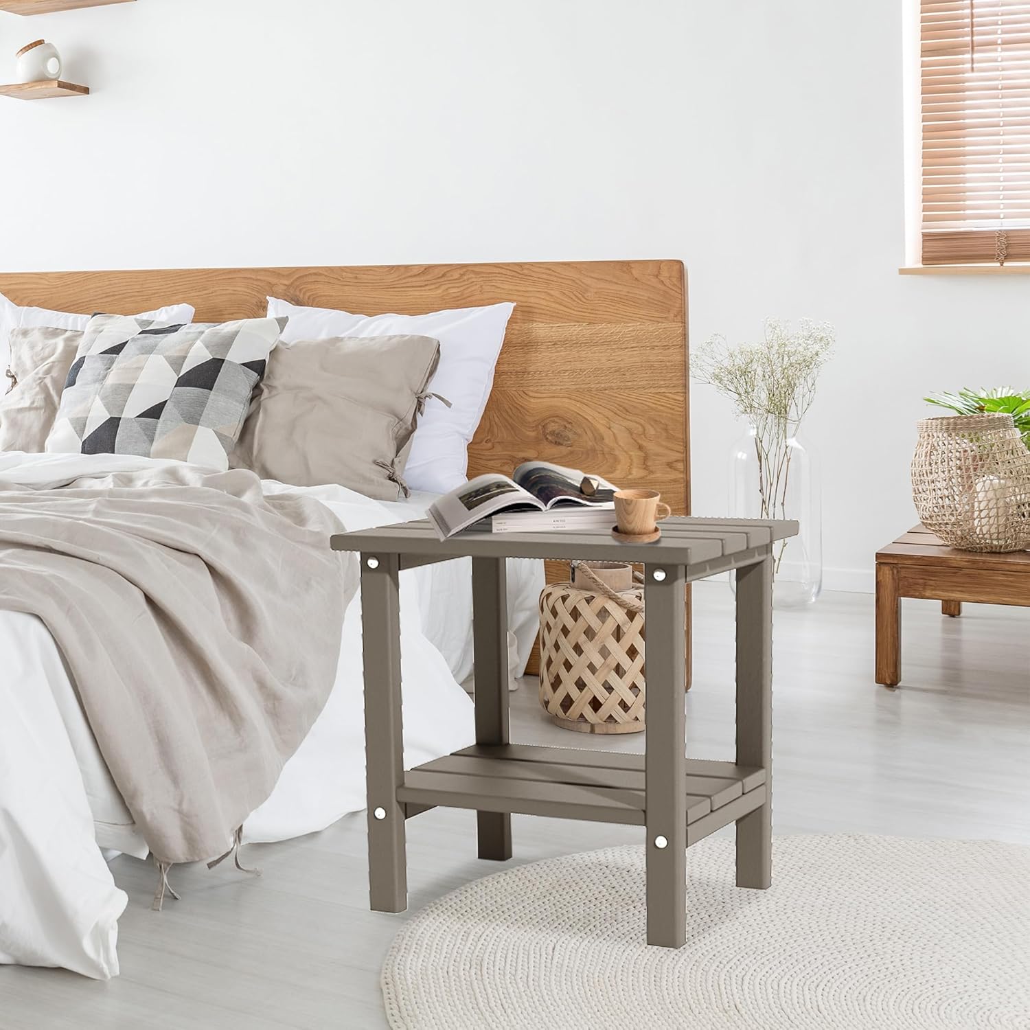 Outdoor Side Table, Weather Resistant HDPE Outdoor Table, 2-Tier Small Patio Tables for Outside or Indoor(Latte Brown)