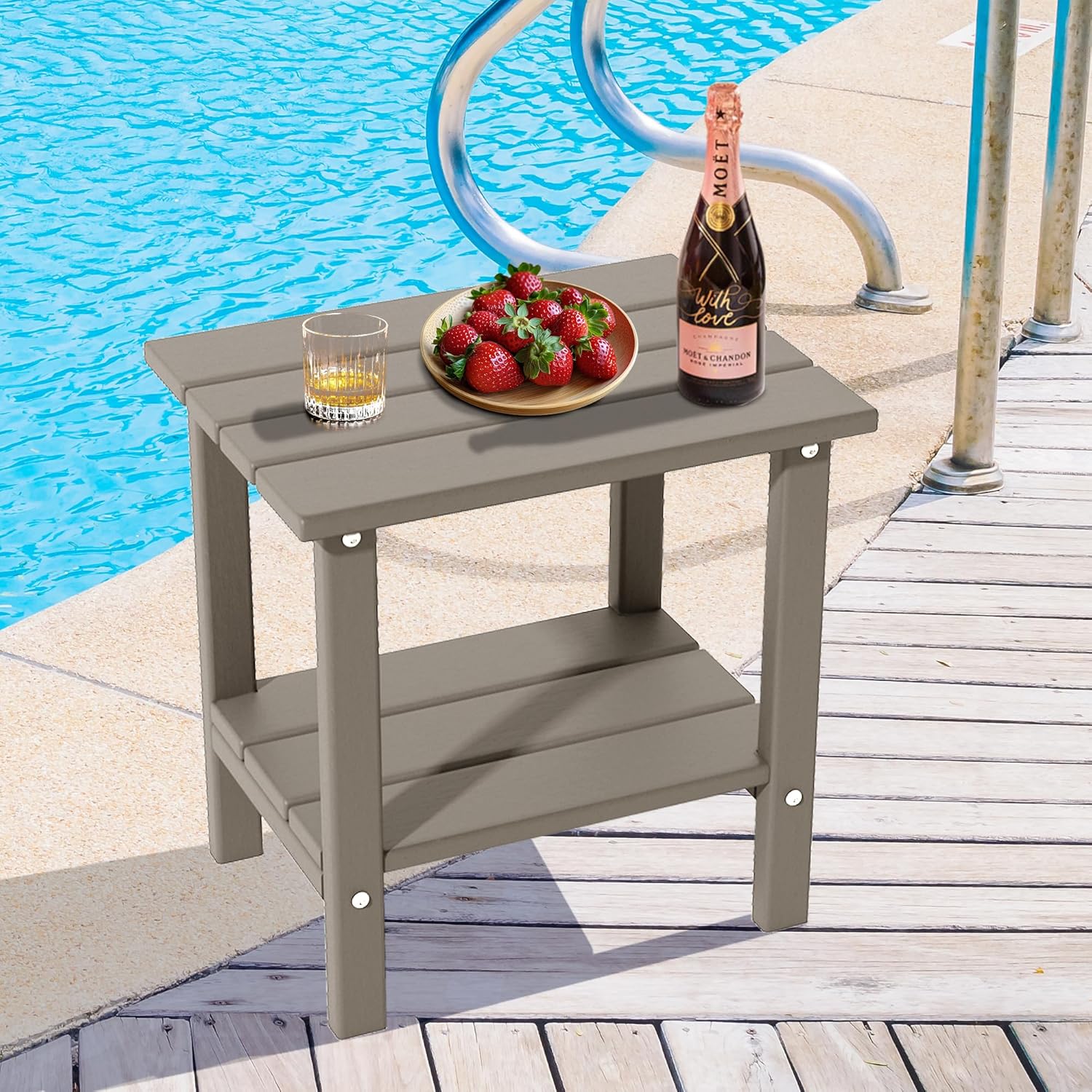 - DOUBLE STORAGE SPACE: This outdoor side table features a double-layered design, offering ample space for books, drinks, or decor, keeping your essentials organized and within reach.