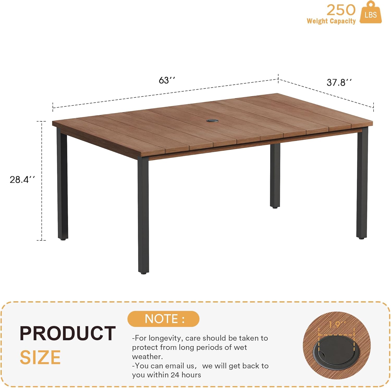 VICLLAX 63" Rectangle Patio Table with Umbrella Hole, All Weather Metal Outdoor Dining Table for 6, Walnut Wood-Like Tabletop